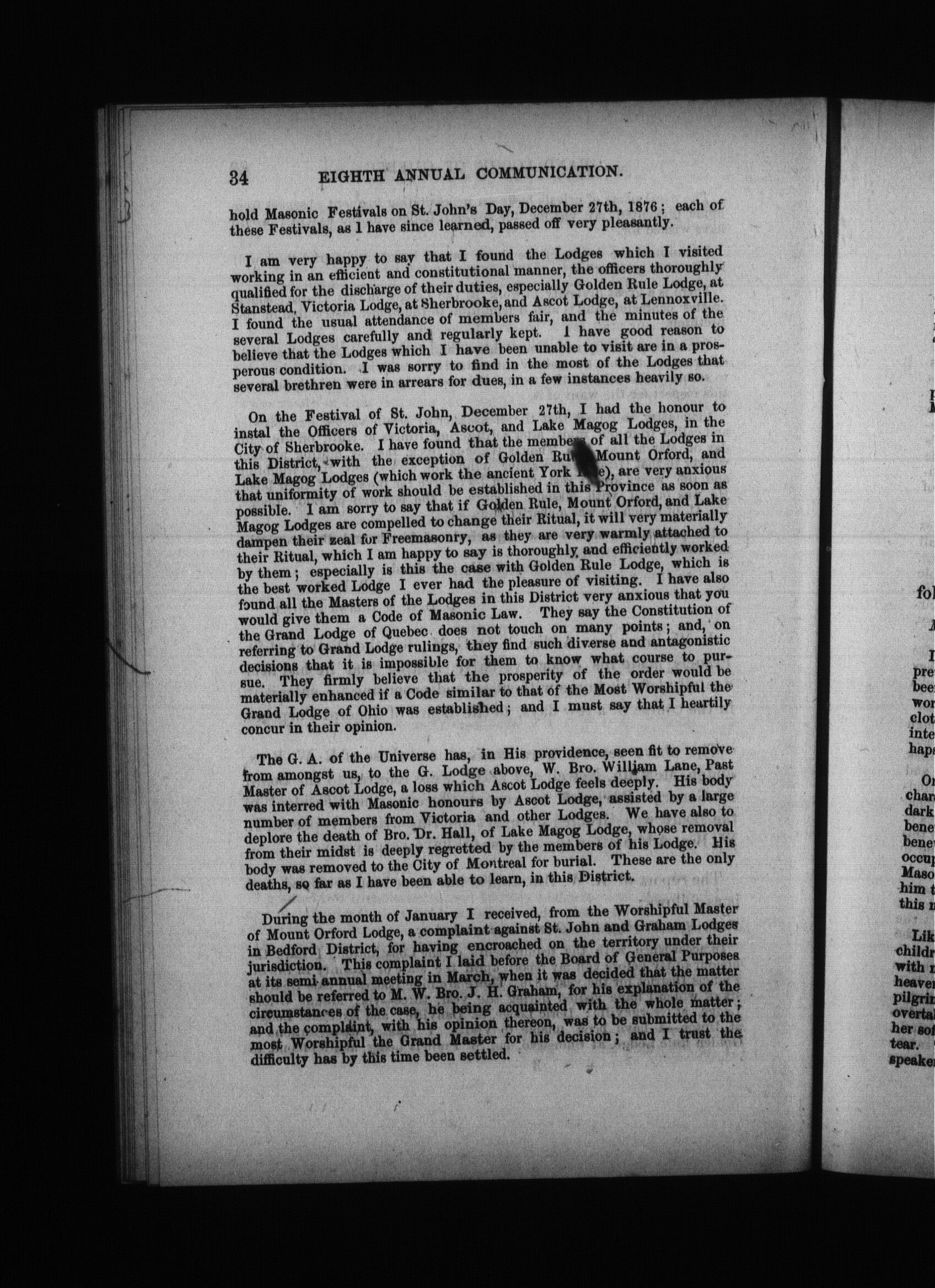 Proceedings of the Grand Lodge of Quebec, Ancient Free and Accepted Masons ... at its ... annual communication : Proceedings of the Grand Lodge of Quebec, Ancient Free and Accepted Masons, at its eighth annual communication : Eighth (1877)