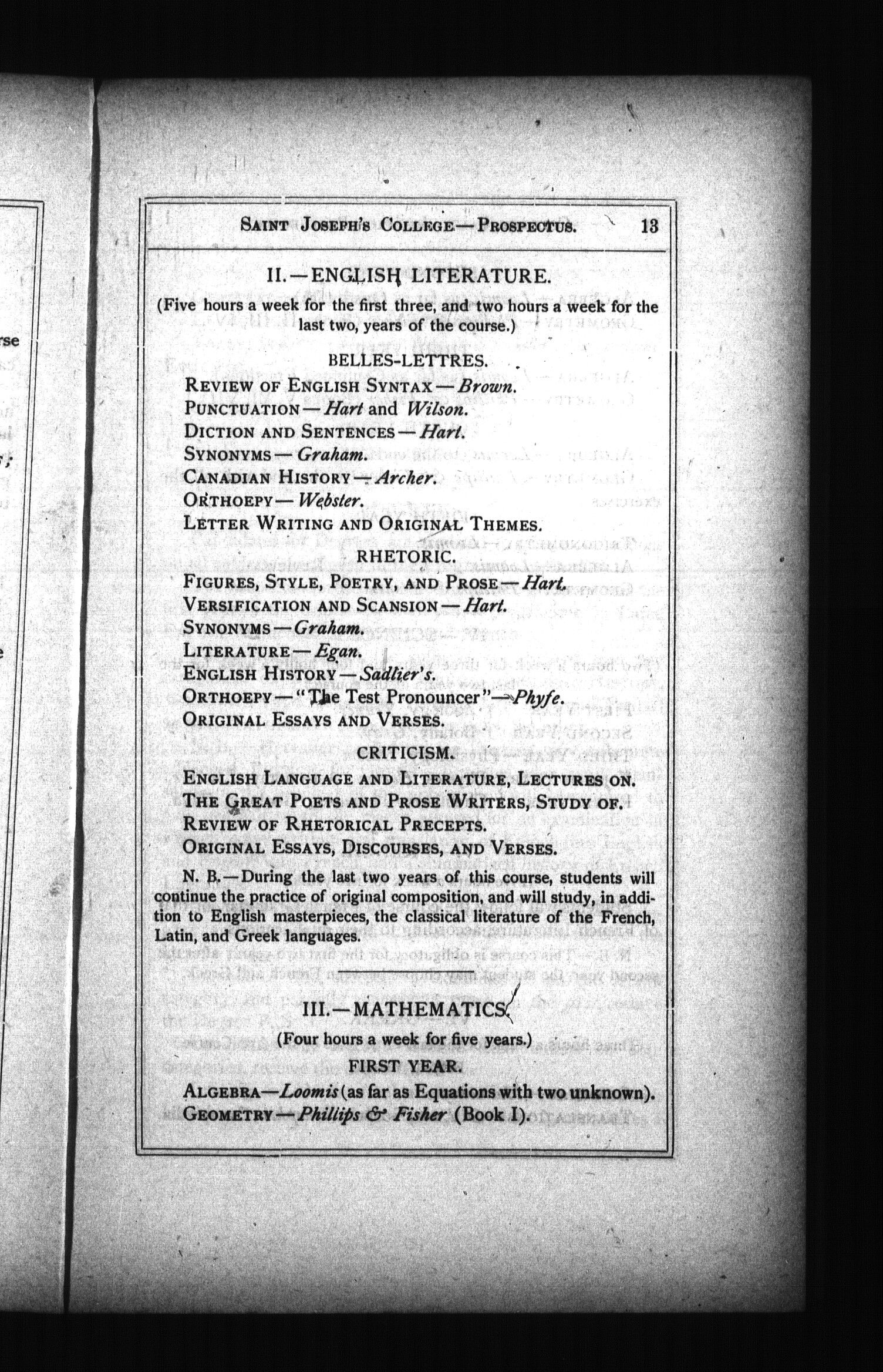 [Saint-Joseph, N.B.] : [Université du Collège Saint-Joseph], 1898; 60 images, 59 with full-text search