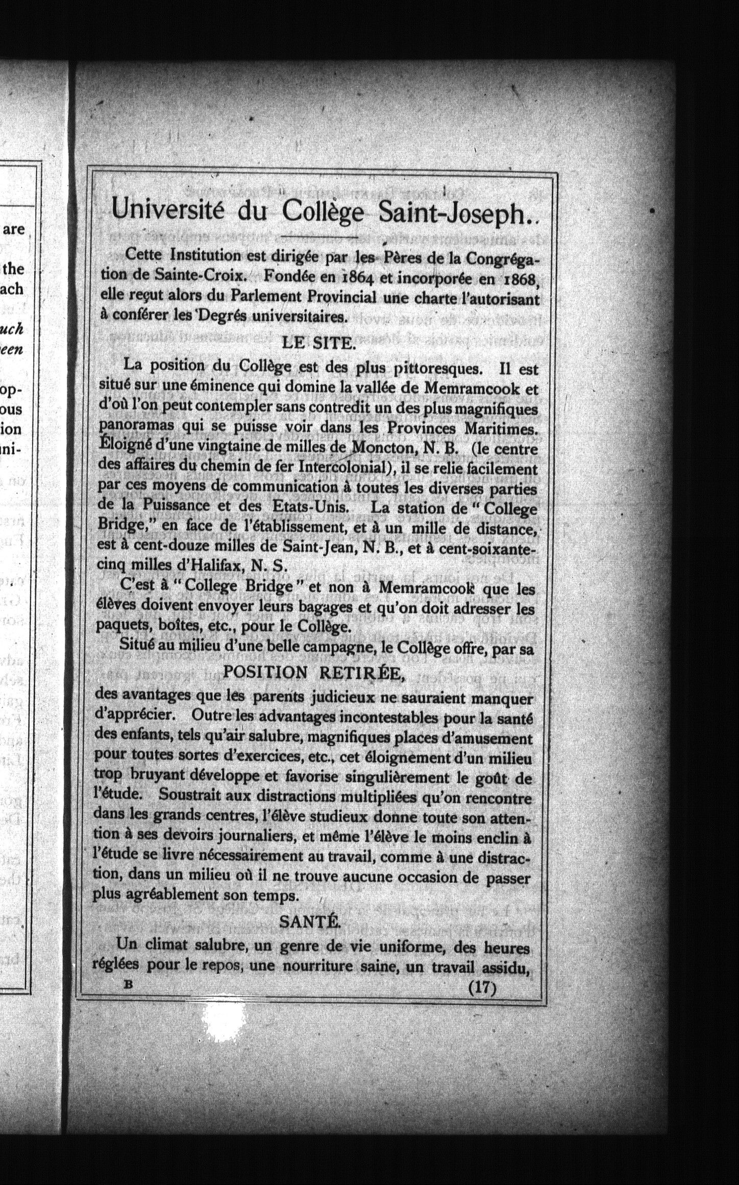 [Saint-Joseph, N.B.] : [Université du Collège Saint-Joseph], 1898; 60 images, 59 with full-text search