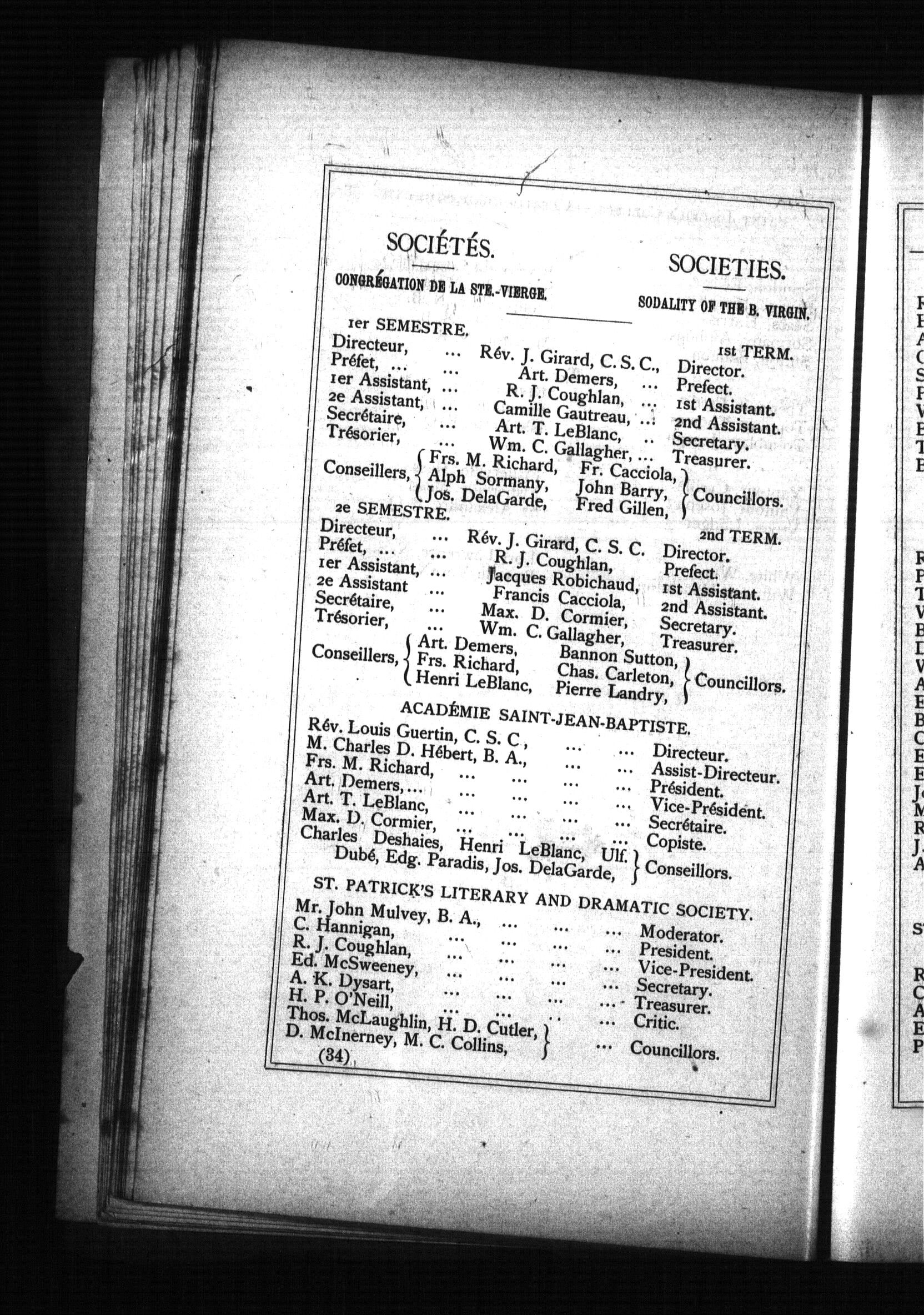 [Saint-Joseph, N.B.] : [Université du Collège Saint-Joseph], 1898; 60 images, 59 with full-text search
