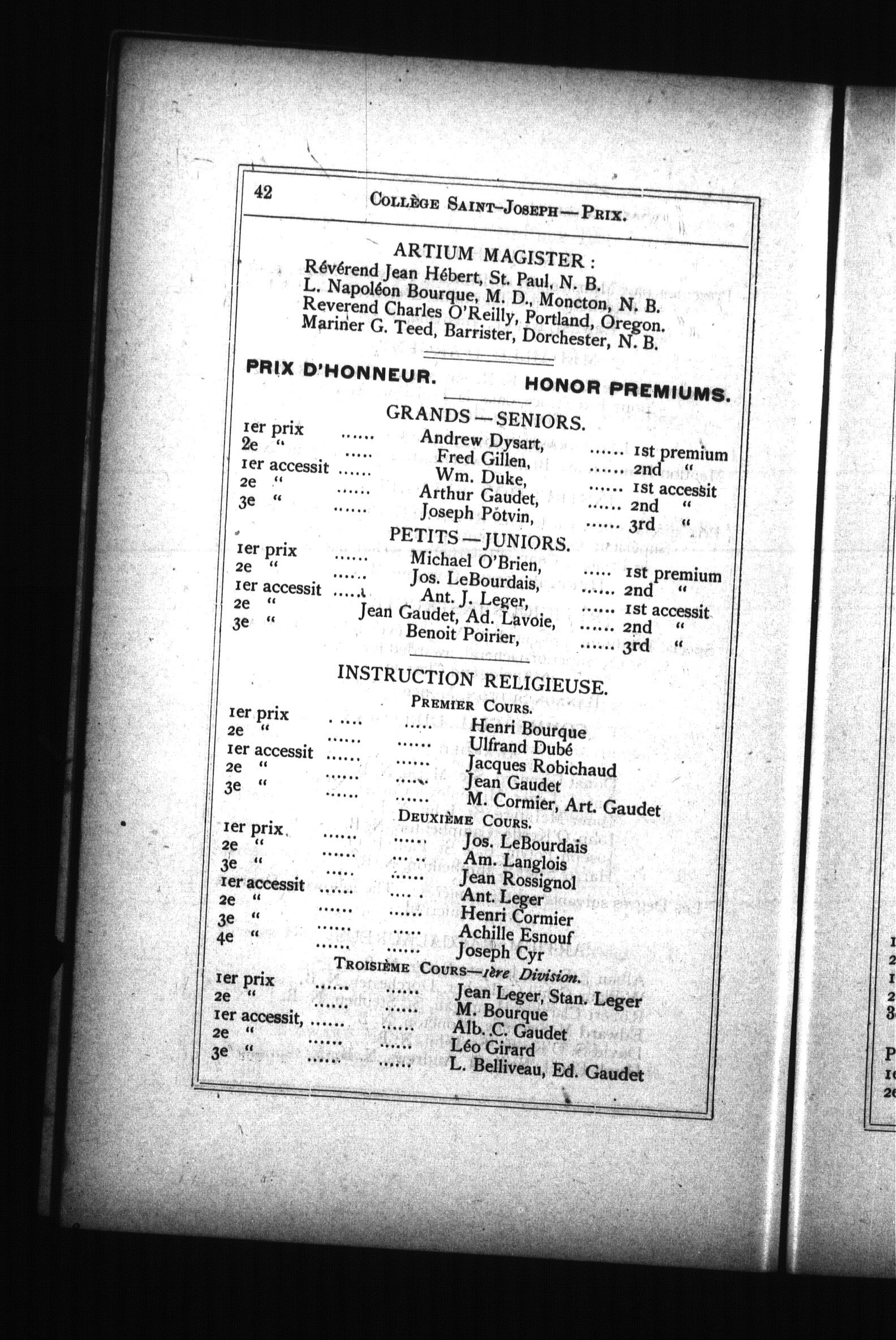 [Saint-Joseph, N.B.] : [Université du Collège Saint-Joseph], 1898; 60 images, 59 avec recherche en texte intégral