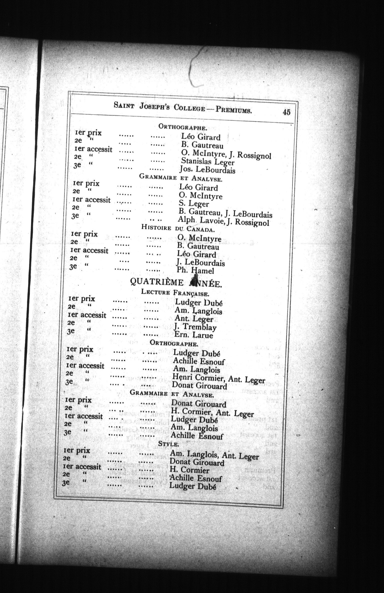 [Saint-Joseph, N.B.] : [Université du Collège Saint-Joseph], 1898; 60 images, 59 with full-text search