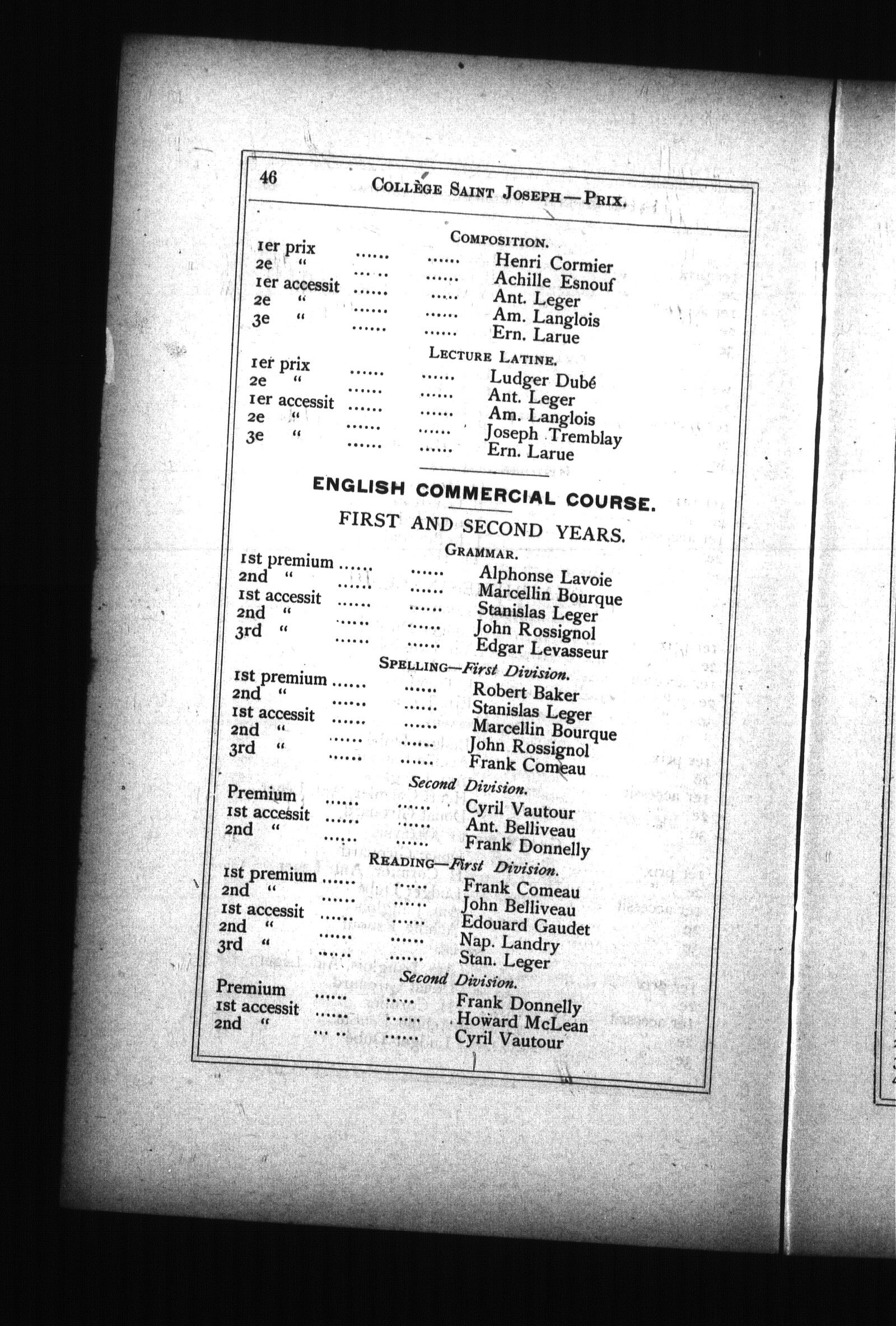 [Saint-Joseph, N.B.] : [Université du Collège Saint-Joseph], 1898; 60 images, 59 with full-text search