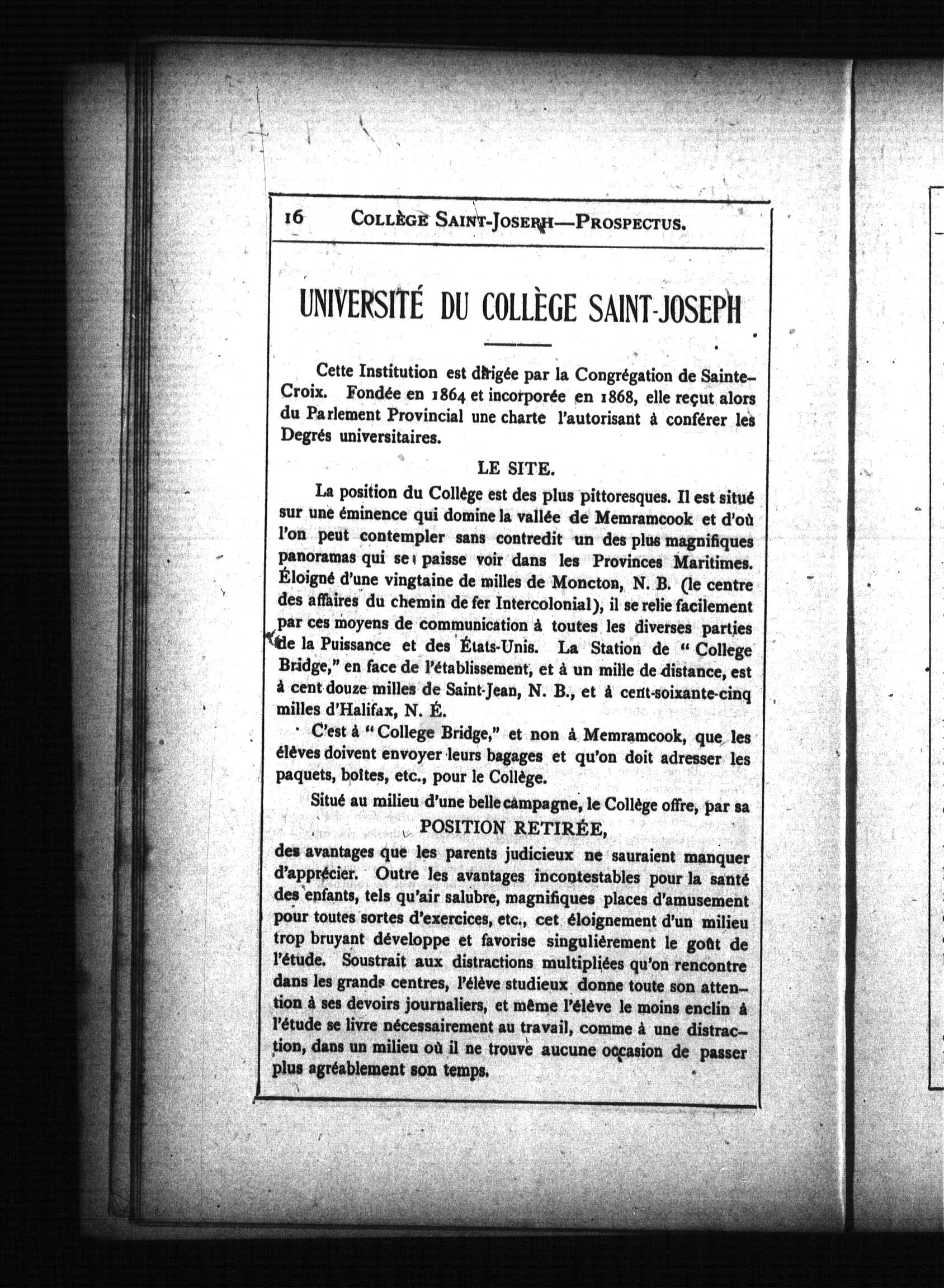 [Saint-Joseph, N.B.] : [Université du Collège Saint-Joseph], 1900; 66 images, 65 with full-text search