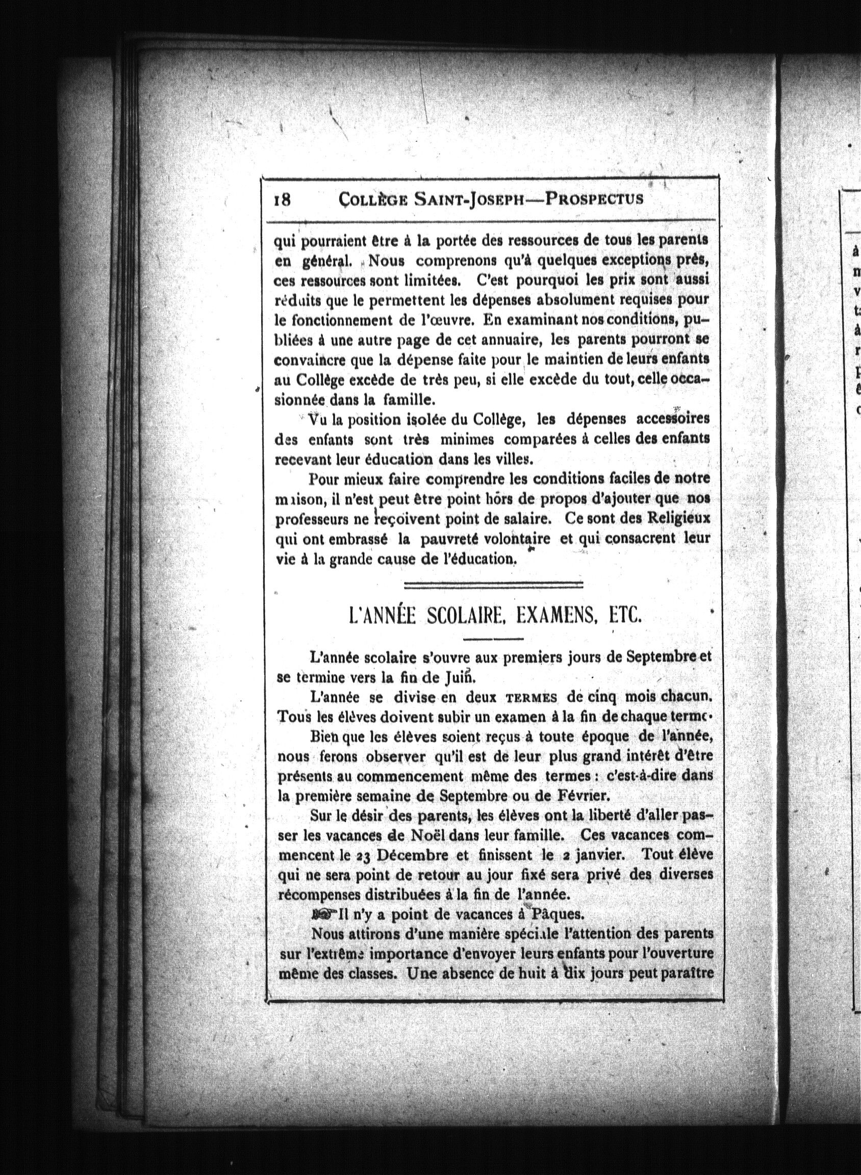 [Saint-Joseph, N.B.] : [Université du Collège Saint-Joseph], 1900; 66 images, 65 avec recherche en texte intégral
