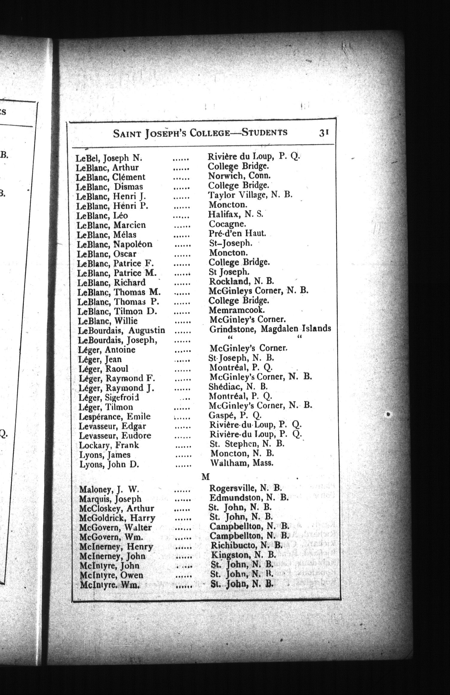 [Saint-Joseph, N.B.] : [Université du Collège Saint-Joseph], 1900; 66 images, 65 avec recherche en texte intégral