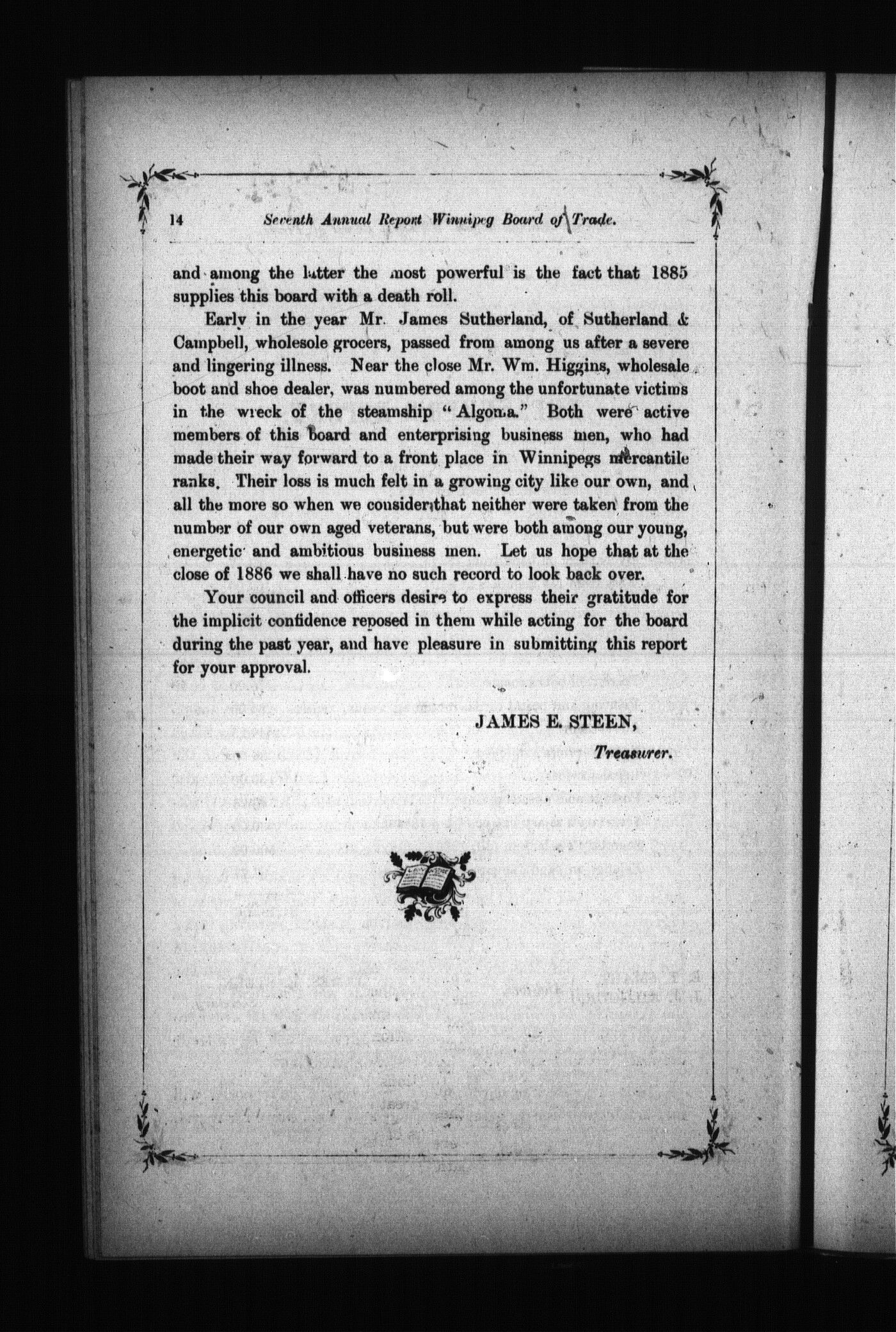Seventh annual report of the Winnipeg Board of Trade : together with a statistical report of the city's trade for 1885 : Seventh (1885)