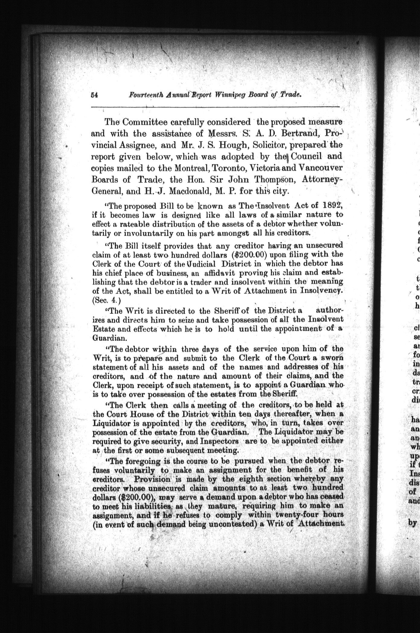Annual report of the Winnipeg Board of Trade : : Fourteenth annual report of the Winnipeg Board of Trade : Fourteenth (1892)