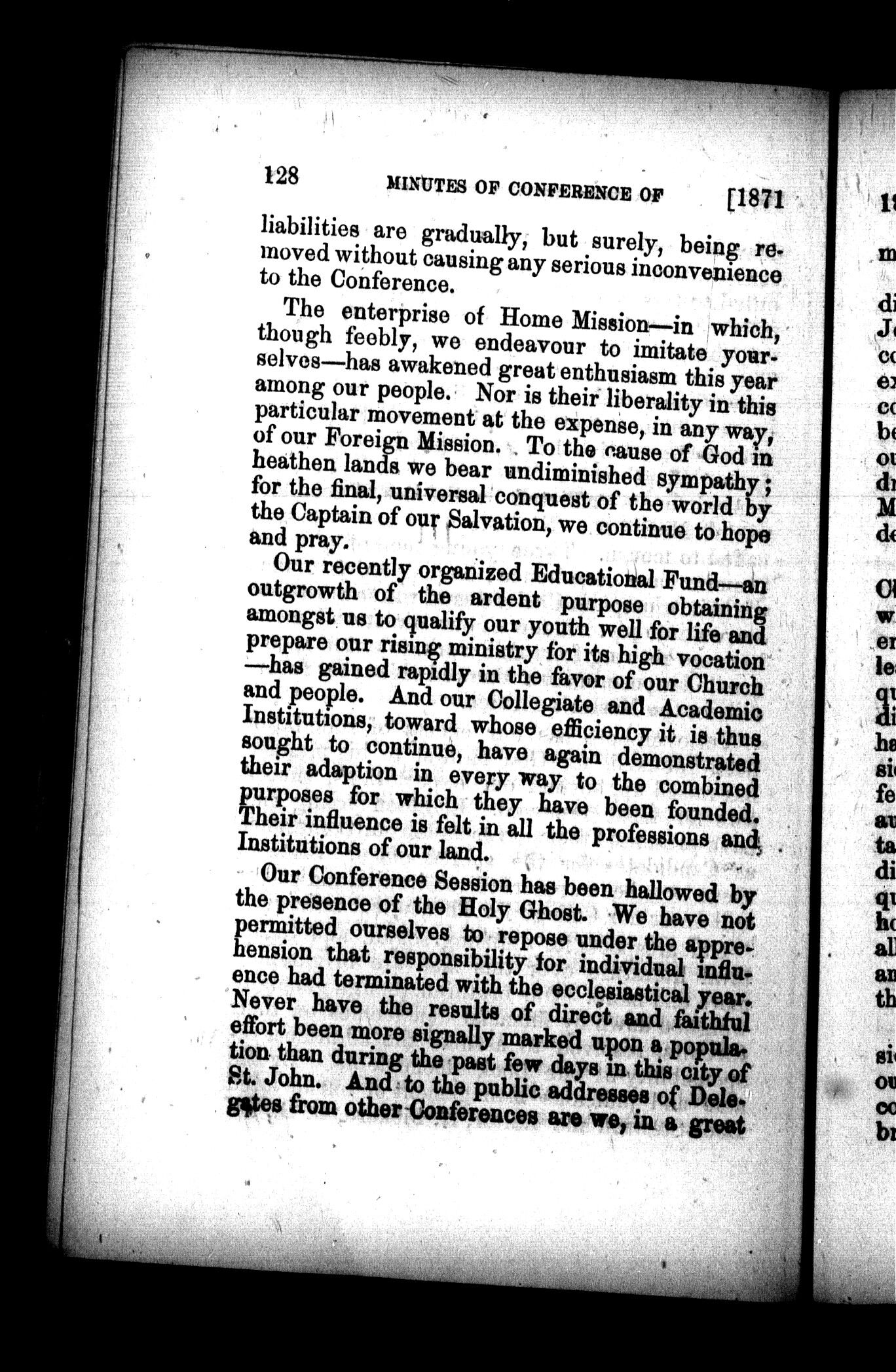 Minutes of the ... annual conference of the Wesleyan Methodist Church, of Eastern British America : Minutes of the seventeenth annual conference of the Wesleyan Methodist Church, of Eastern British America : held in the Centenary Church, Saint John, N.B. begun on Thursday, June 22nd, and concluded on Friday, June 30th, 1871 : Seventeenth (1871)