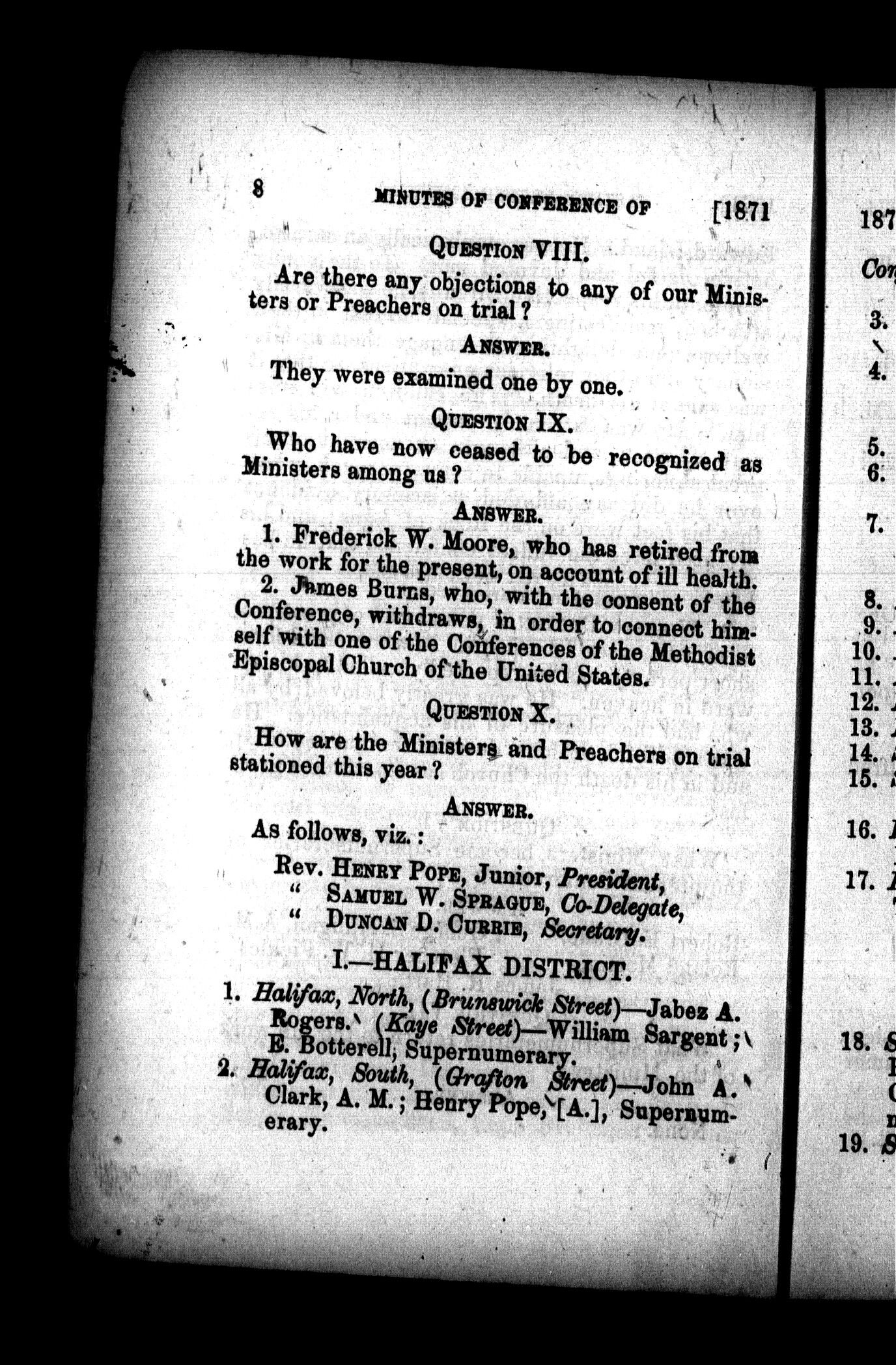 Minutes of the seventeenth annual conference of the Wesleyan Methodist Church, of Eastern British America : held in the Centenary Church, Saint John, N.B. begun on Thursday, June 22nd, and concluded on Friday, June 30th, 1871 : Seventeenth (1871)