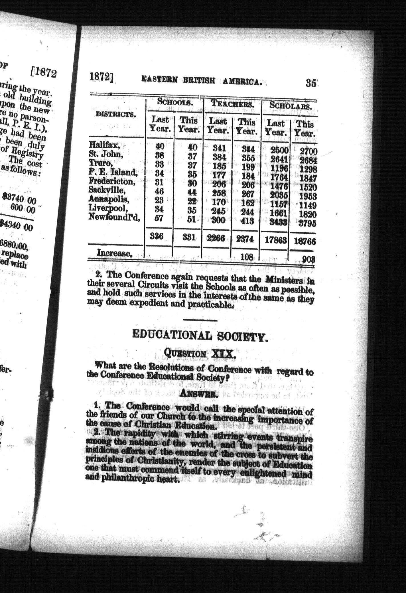 Minutes of the ... annual conference of the Wesleyan Methodist Church, of Eastern British America : Minutes of the eighteenth annual conference of the Wesleyan Methodist Church of Eastern British America : held in the Brunswick Street Church, Halifax, Nova Scotia, begun on Thursday, June 27th, and concluded on Thursday, July 4th, 1872 : Eighteenth (1872)