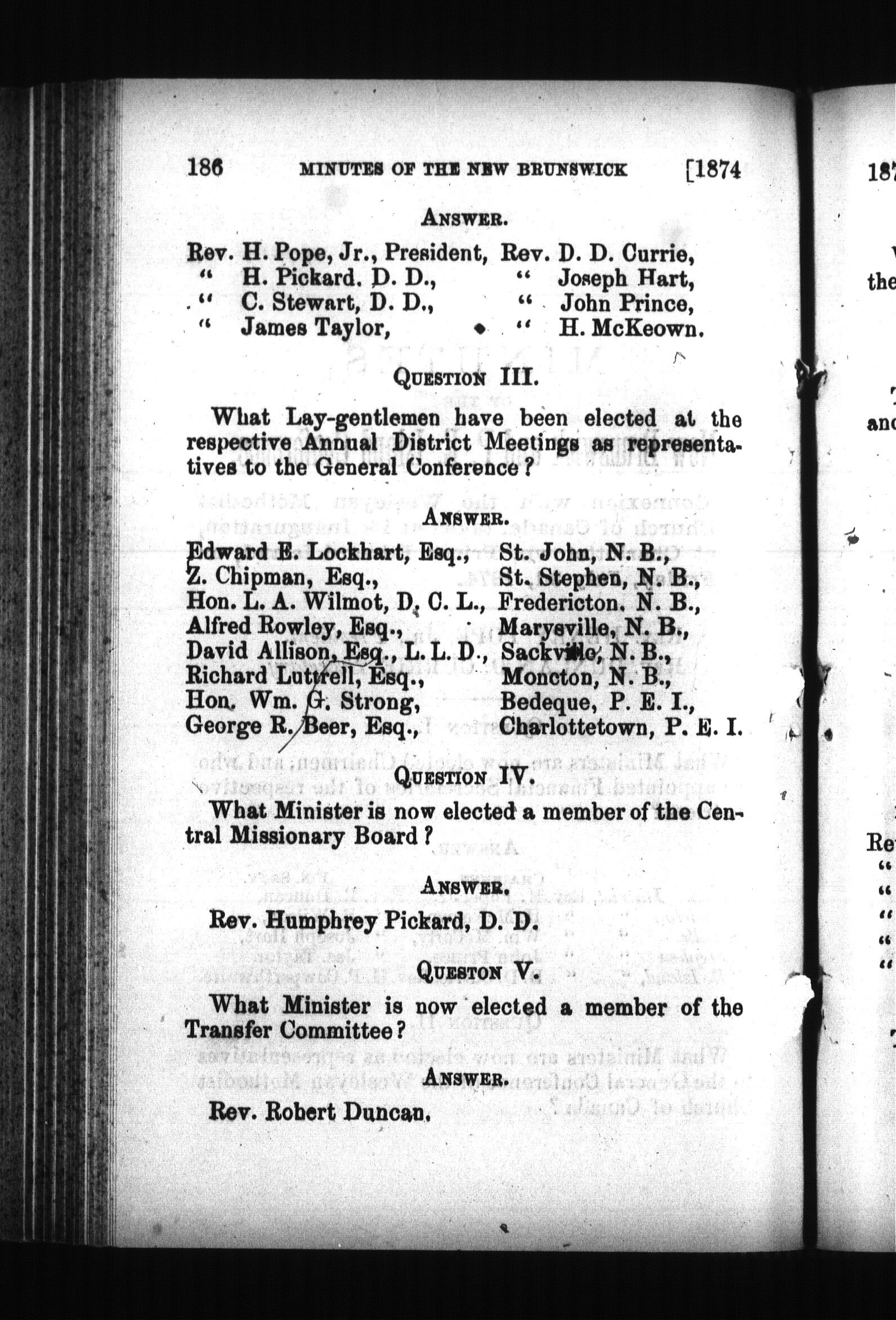 Minutes of the ... annual conference of the Wesleyan Methodist Church, of Eastern British America : Minutes of the twentieth annual conference of the Wesleyan Methodist Church of Eastern British America, and of the first Nova Scotia Conference, and first New Brunswick & P.E. Island Conference of the Wesleyan Methodist Church of Canada : held in the Wesleyan Church, Charlottetown, P.E. Island, begun on Thursday, June 25th, and concluded on Friday, July 3rd, 1874 : Twentieth (1874)