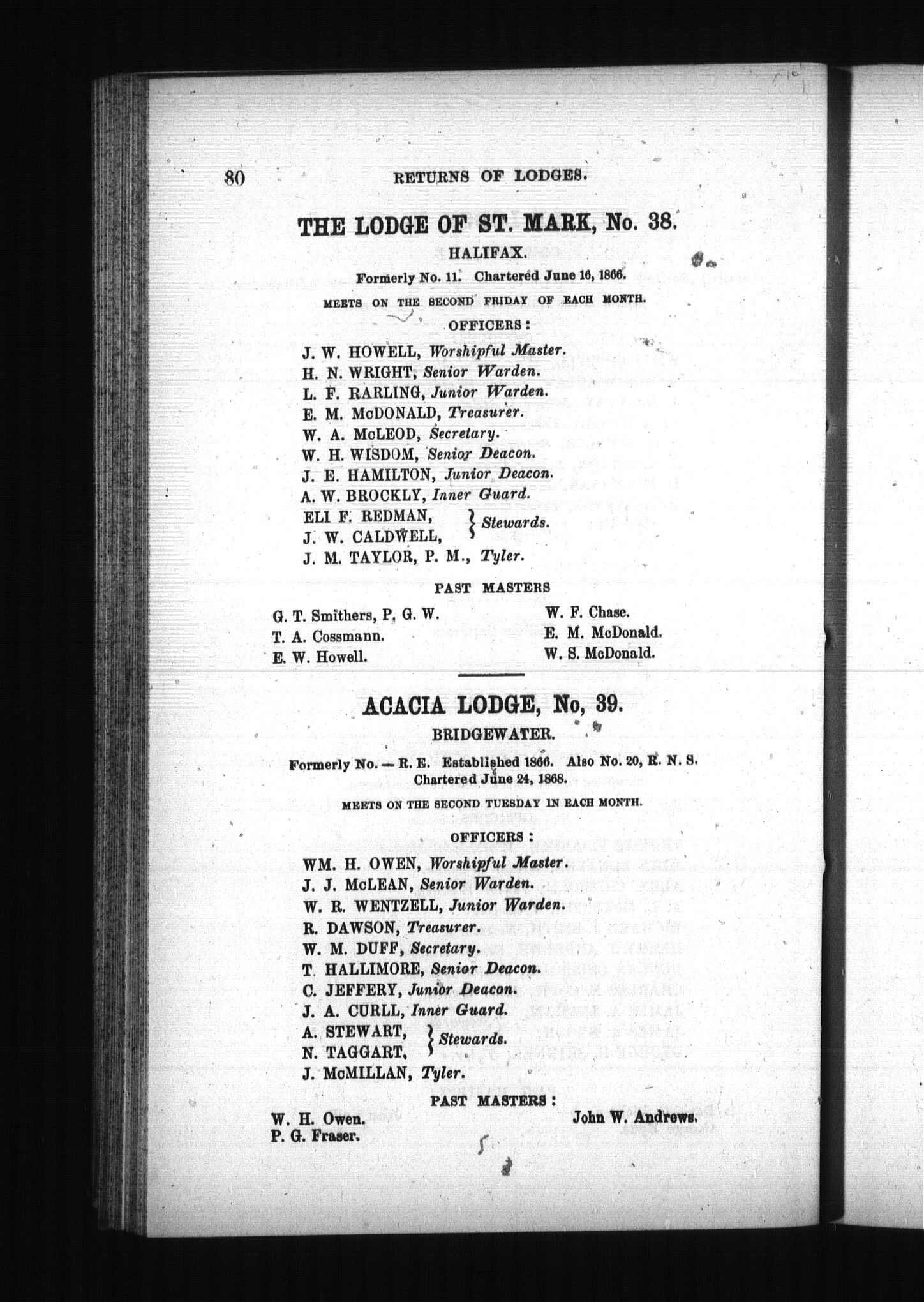 [Halifax, N.S.?] : [M.W. Grand Lodge of F. and A. Masons of Nova Scotia ], 1873; 246 images with full-text search