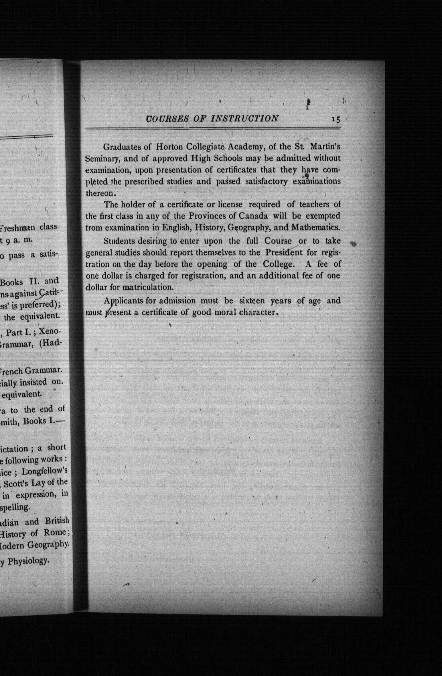 - Calendar of Acadia University, Wolfville, Nova Scotia : 1896/97