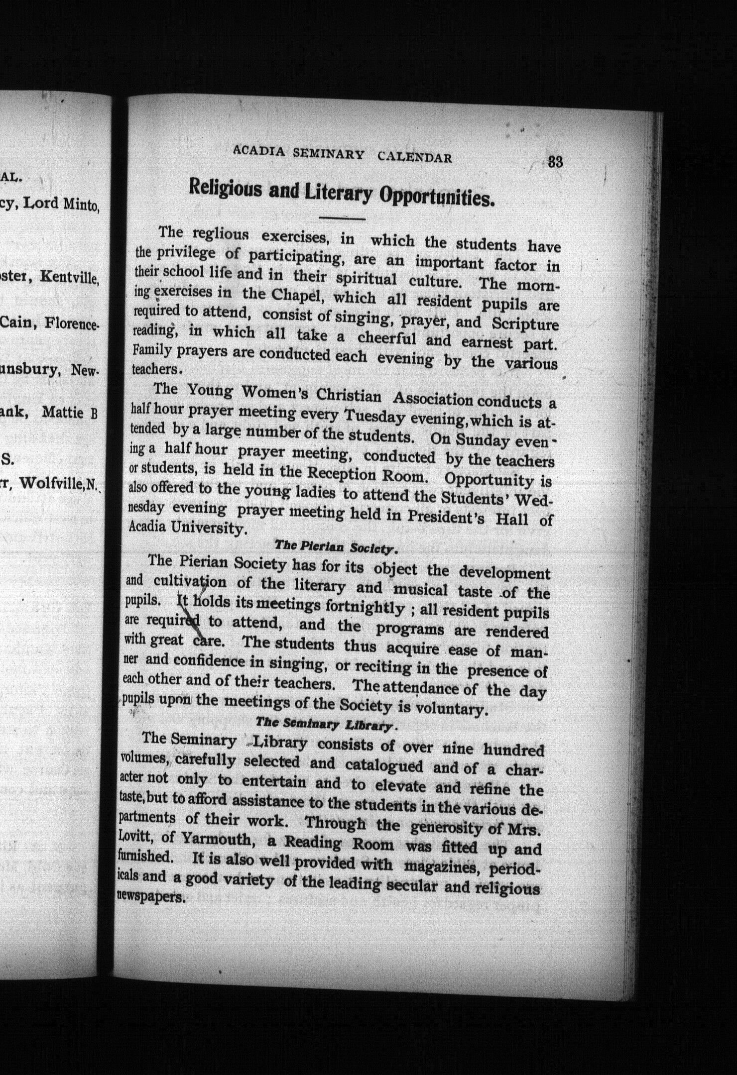 Aide [Wolfville, N.S.?] : [Acadia Seminary], [1901?]; 70 images avec recherche en texte intégral
