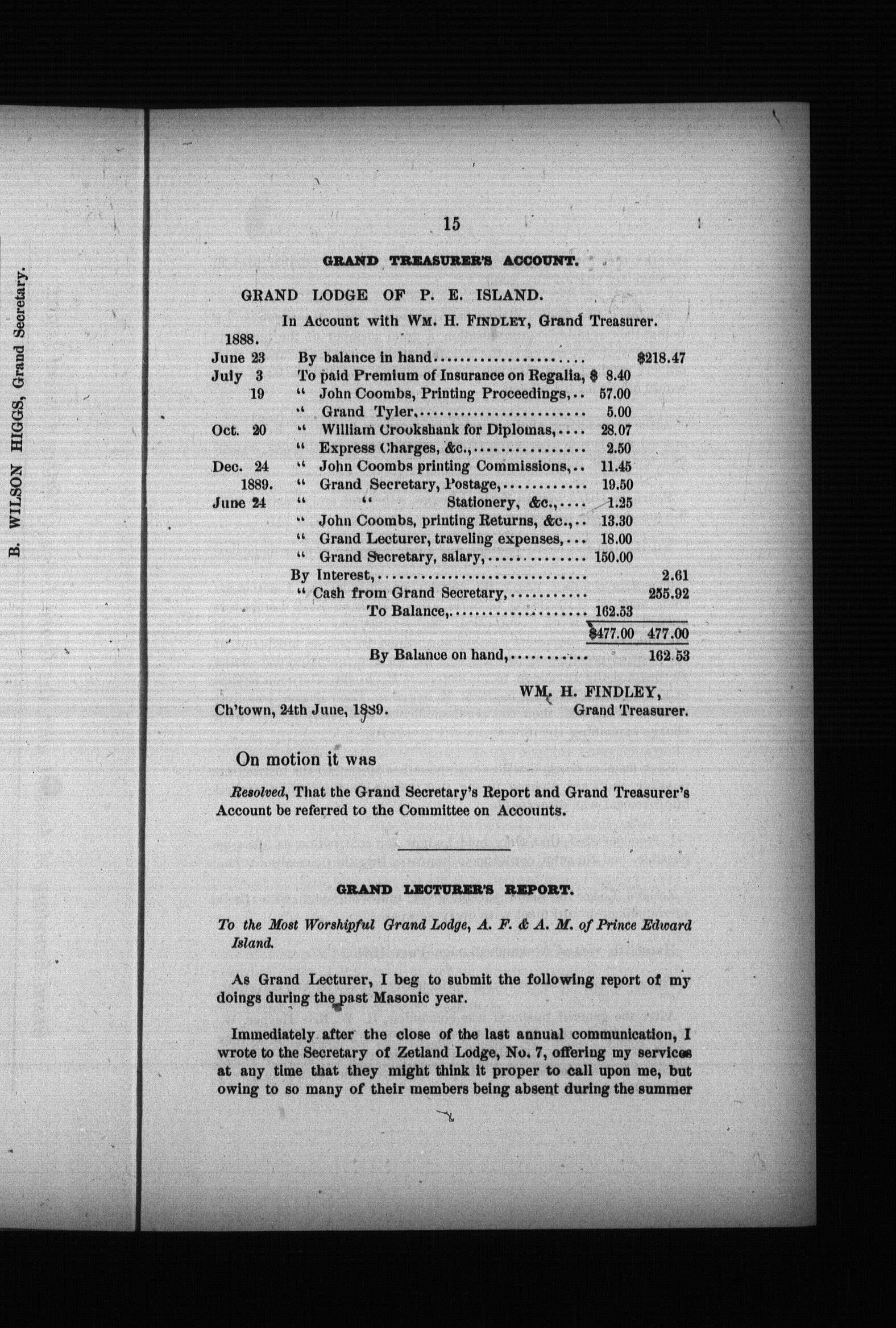 Proceedings of the M.W. Grand Lodge of the Ancient & Honorable Fraternity of Free and Accepted Masons of Prince Edward Island ... and ... annual communication : Proceedings of the M.W. Grand Lodge of the Ancient and Honorable Fraternity of Free and Accepted Masons of Prince Edward Island : fourteenth annual communication held at Charlottetown, 24th June, 1889 : Fourteenth (1889)