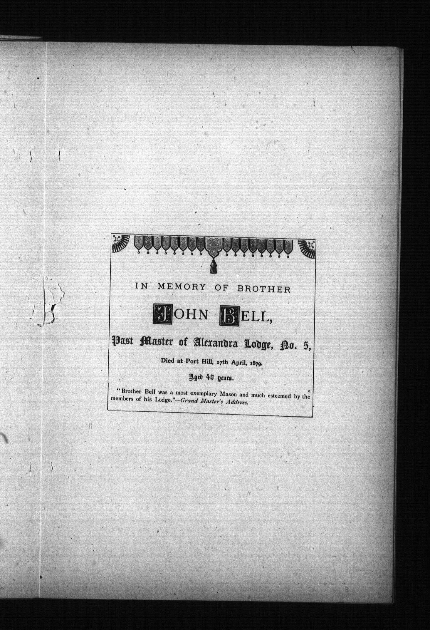 Proceedings of the M.W. Grand Lodge of the Ancient & Honorable Fraternity of Free and Accepted Masons of Prince Edward Island ... and ... annual communication : Proceedings of the M.W. Grand Lodge of the Ancient and Honorable Fraternity of Free and Accepted Masons of Prince Edward Island ... annual communication held at Charlottetown, 24th 7 25th June, 1879 : Fourth (1879)
