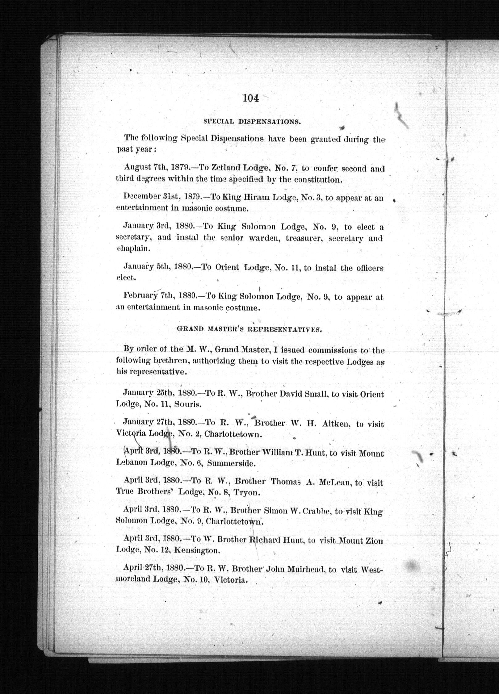 - [Charlottetown, P.E.I.] : [M.W. Grand Lodge of the Ancient and Honorable Fraternity of Free and Accepted Masons of Prince Edward Island], 1880