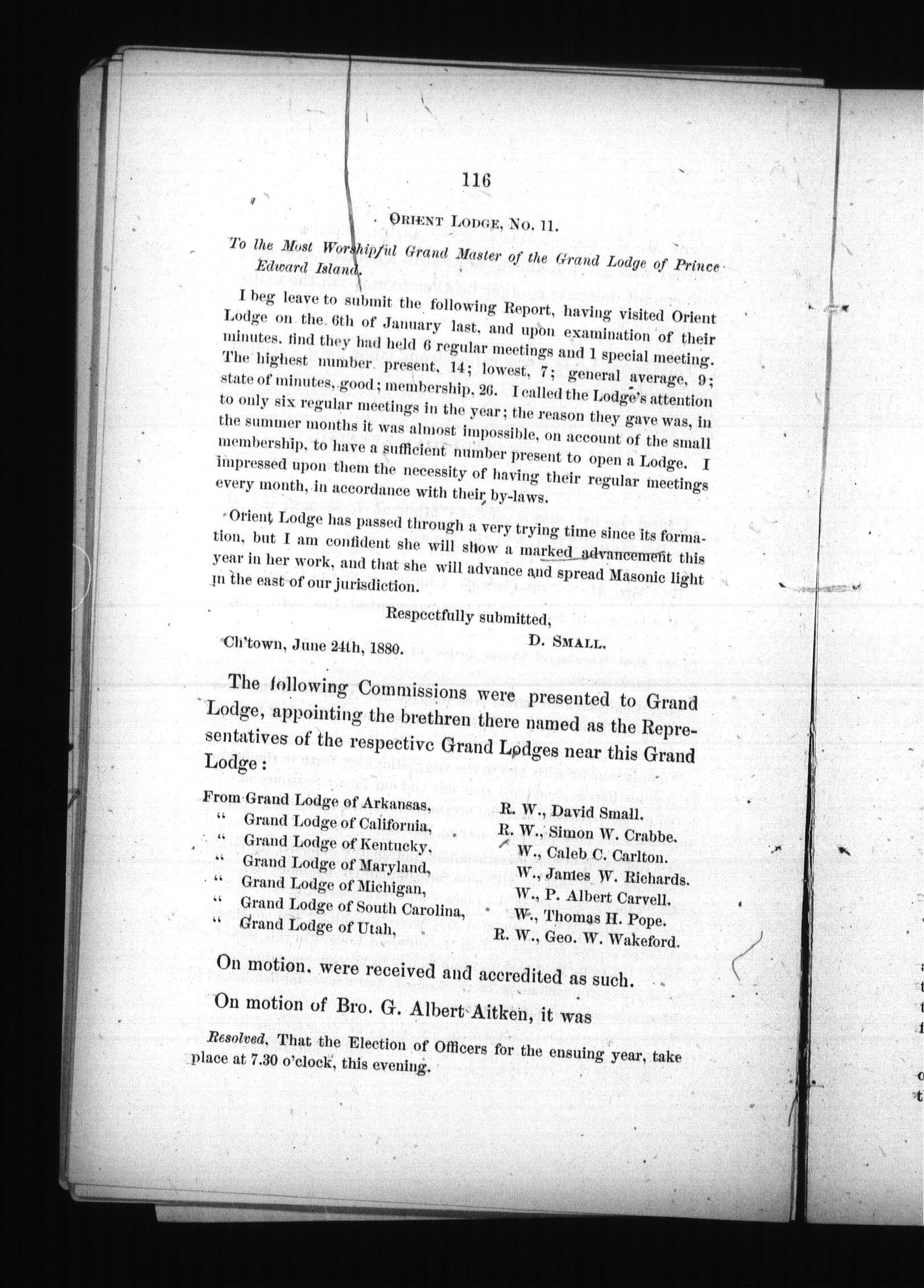 - [Charlottetown, P.E.I.] : [M.W. Grand Lodge of the Ancient and Honorable Fraternity of Free and Accepted Masons of Prince Edward Island], 1880