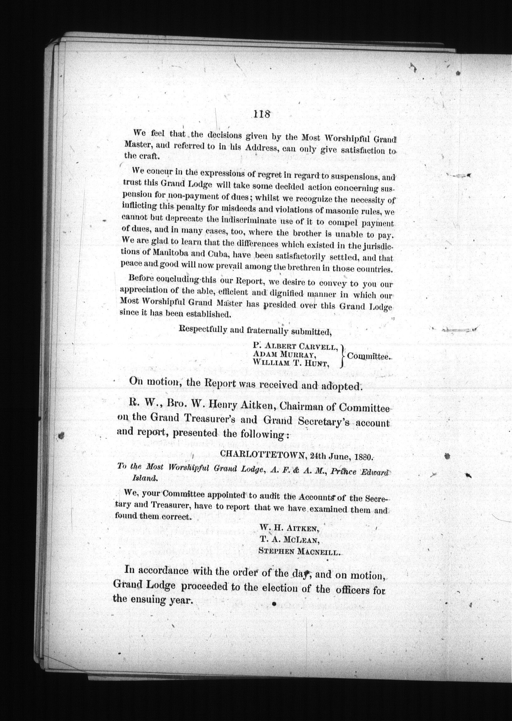 - [Charlottetown, P.E.I.] : [M.W. Grand Lodge of the Ancient and Honorable Fraternity of Free and Accepted Masons of Prince Edward Island], 1880