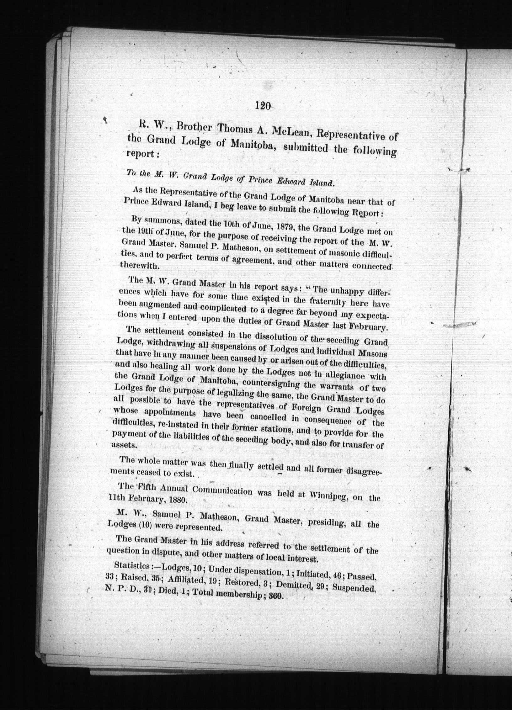 Proceedings of the M.W. Grand Lodge of the Ancient & Honorable Fraternity of Free and Accepted Masons of Prince Edward Island ... and ... annual communication : Proceedings of the M.W. Grand Lodge of the Ancient and Honorable Fraternity of Free and Accepted Masons of Prince Edward Island ... fifth annual communication held at Charlottetown, 24th June, 1880 : Fifth (1880)