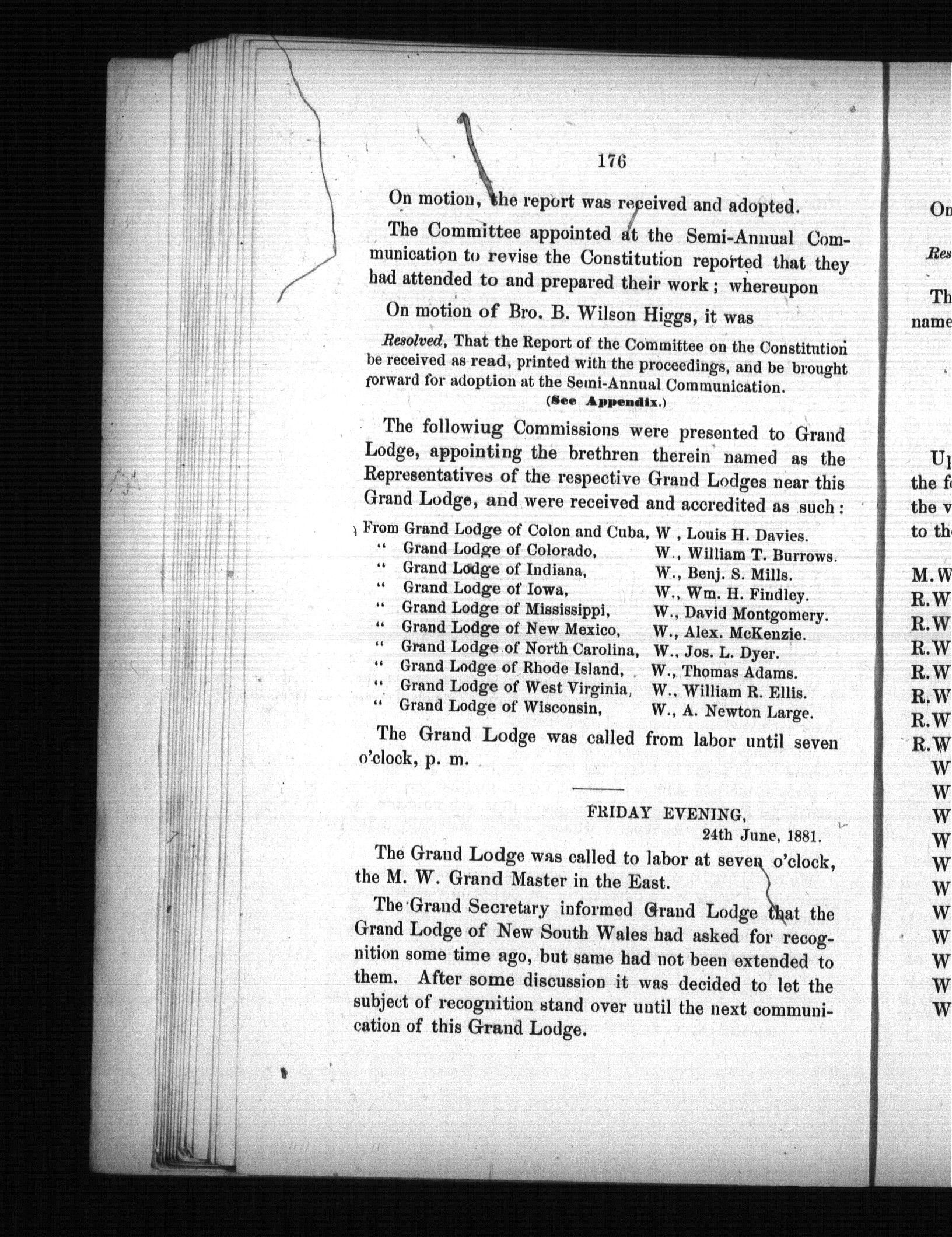 [Charlottetown, P.E.I.] : [M.W. Grand Lodge of the Ancient and Honorable Fraternity of Free and Accepted Masons of Prince Edward Island], 1881; 90 images, 89 avec recherche en texte intégral