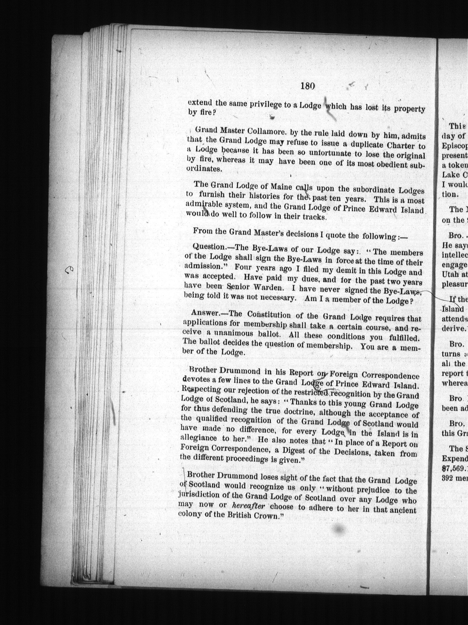 [Charlottetown, P.E.I.] : [M.W. Grand Lodge of the Ancient and Honorable Fraternity of Free and Accepted Masons of Prince Edward Island], 1881; 90 images, 89 avec recherche en texte intégral