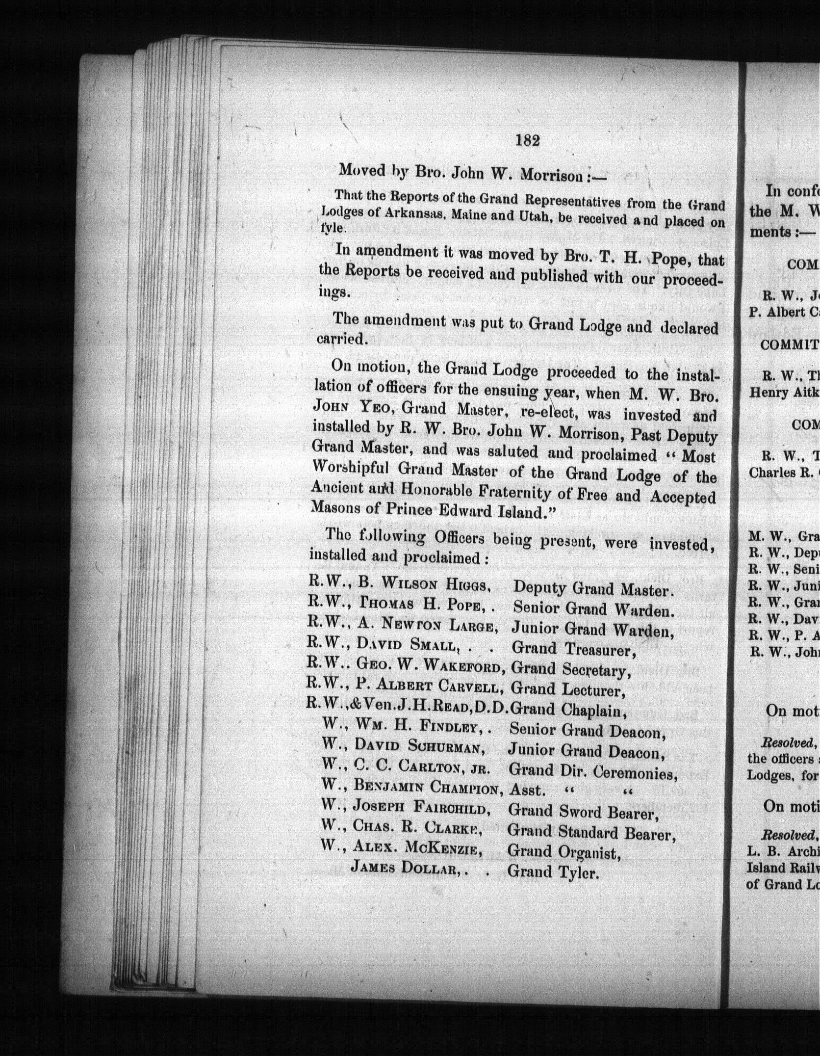 - [Charlottetown, P.E.I.] : [M.W. Grand Lodge of the Ancient and Honorable Fraternity of Free and Accepted Masons of Prince Edward Island], 1881