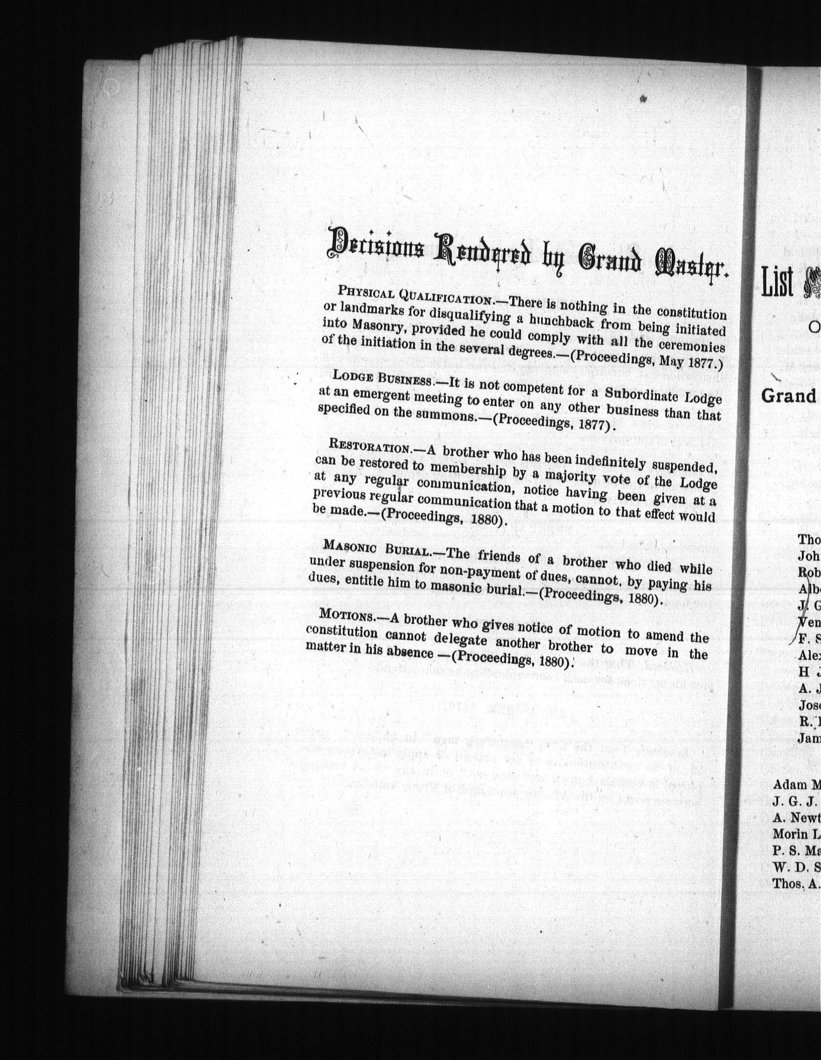 [Charlottetown, P.E.I.] : [M.W. Grand Lodge of the Ancient and Honorable Fraternity of Free and Accepted Masons of Prince Edward Island], 1881; 90 images, 89 avec recherche en texte intégral