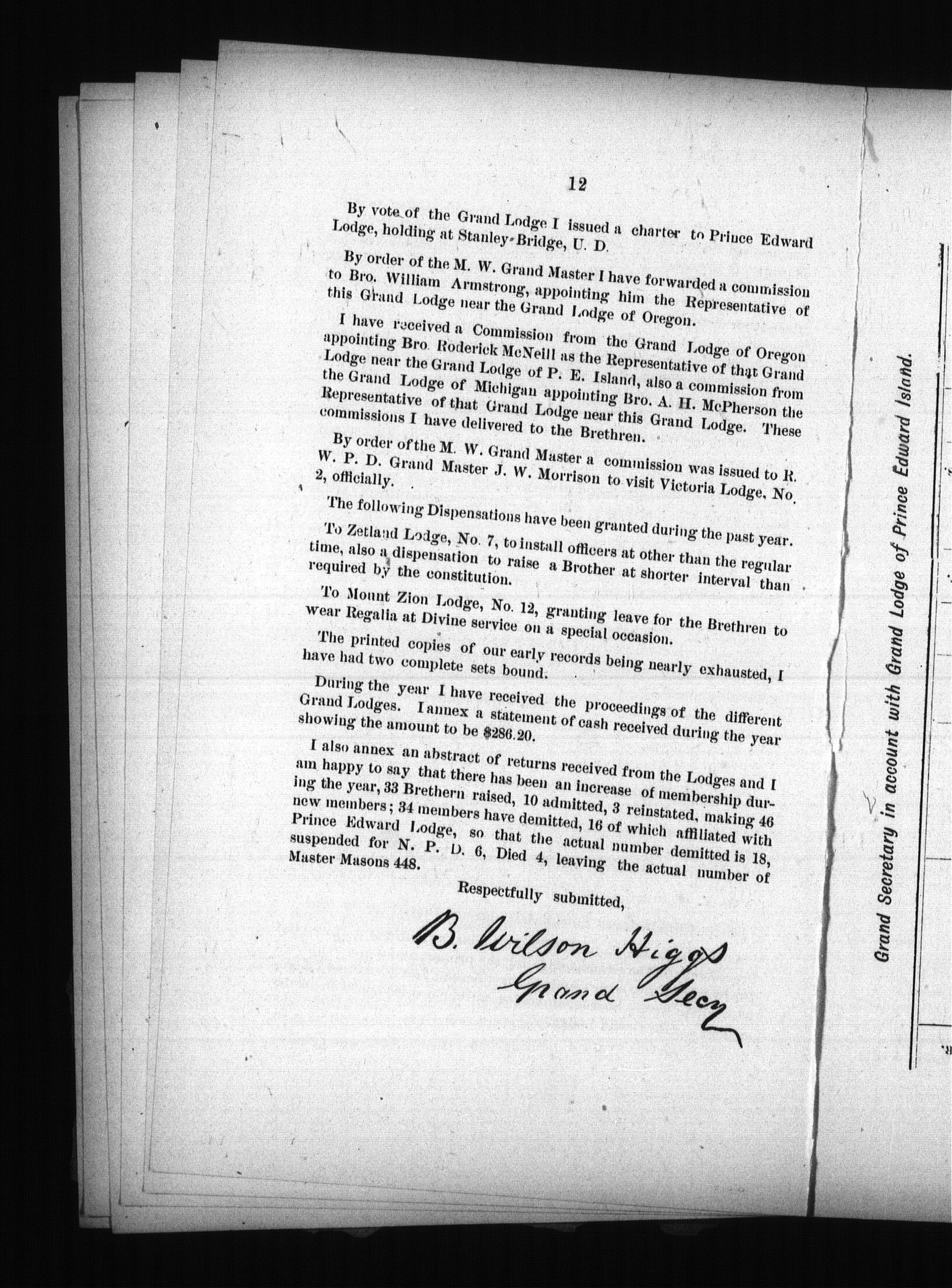 - [Charlottetown, P.E.I.] : [M.W. Grand Lodge of the Ancient and Honorable Fraternity of Free and Accepted Masons of Prince Edward Island], 1886