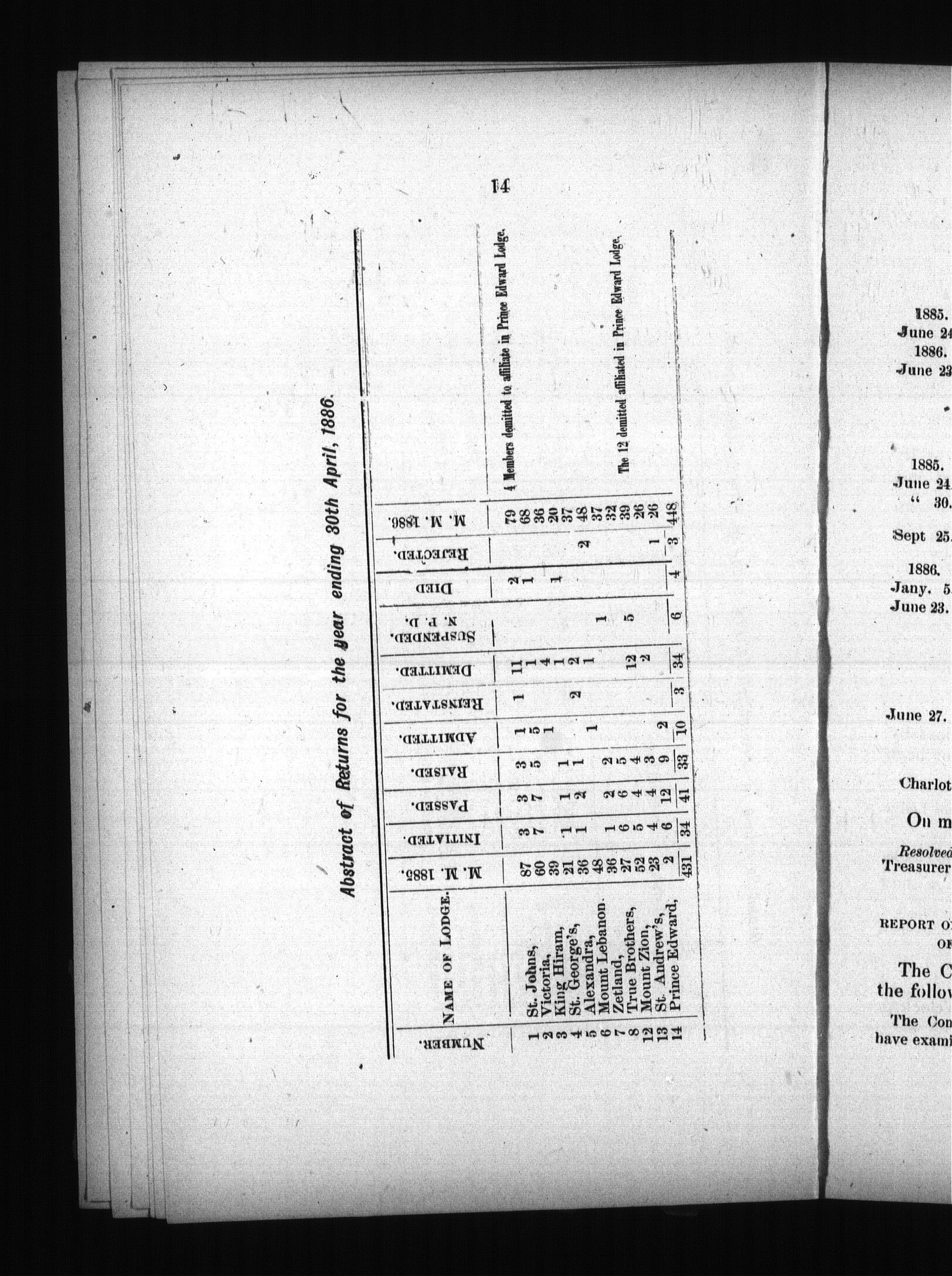 [Charlottetown, P.E.I.] : [M.W. Grand Lodge of the Ancient and Honorable Fraternity of Free and Accepted Masons of Prince Edward Island], 1886; 40 images, 39 with full-text search
