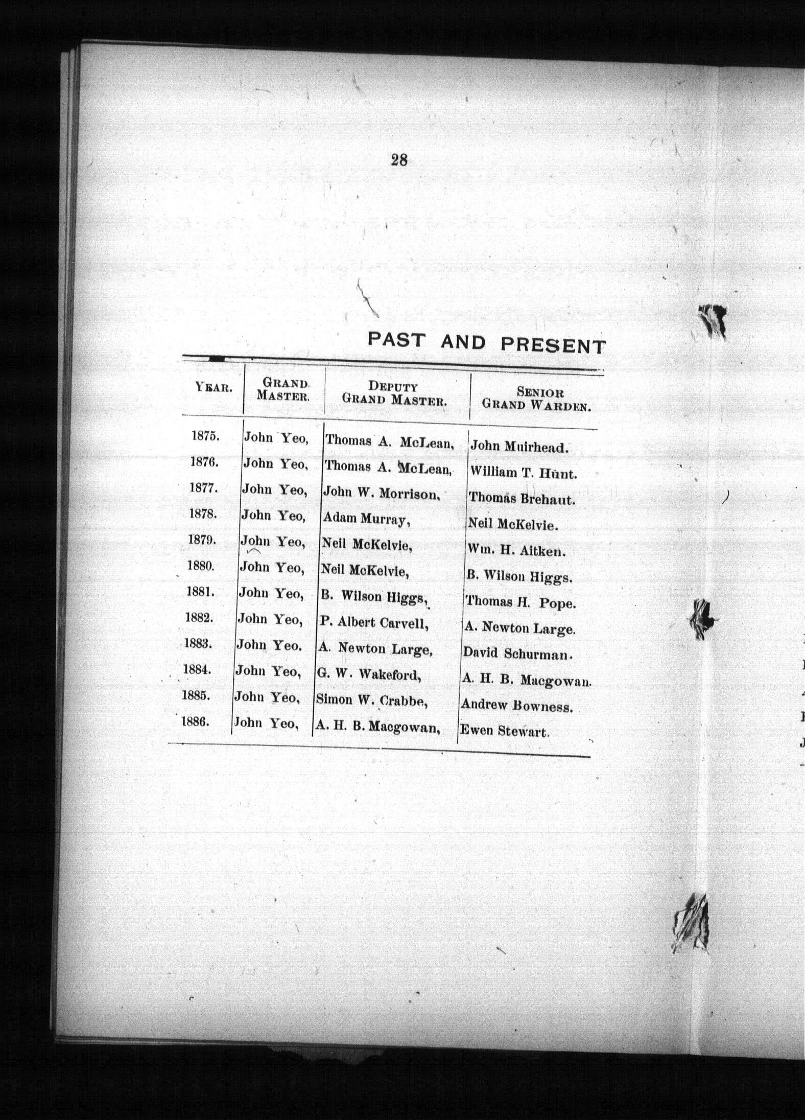 [Charlottetown, P.E.I.] : [M.W. Grand Lodge of the Ancient and Honorable Fraternity of Free and Accepted Masons of Prince Edward Island], 1886; 40 images, 39 avec recherche en texte intégral