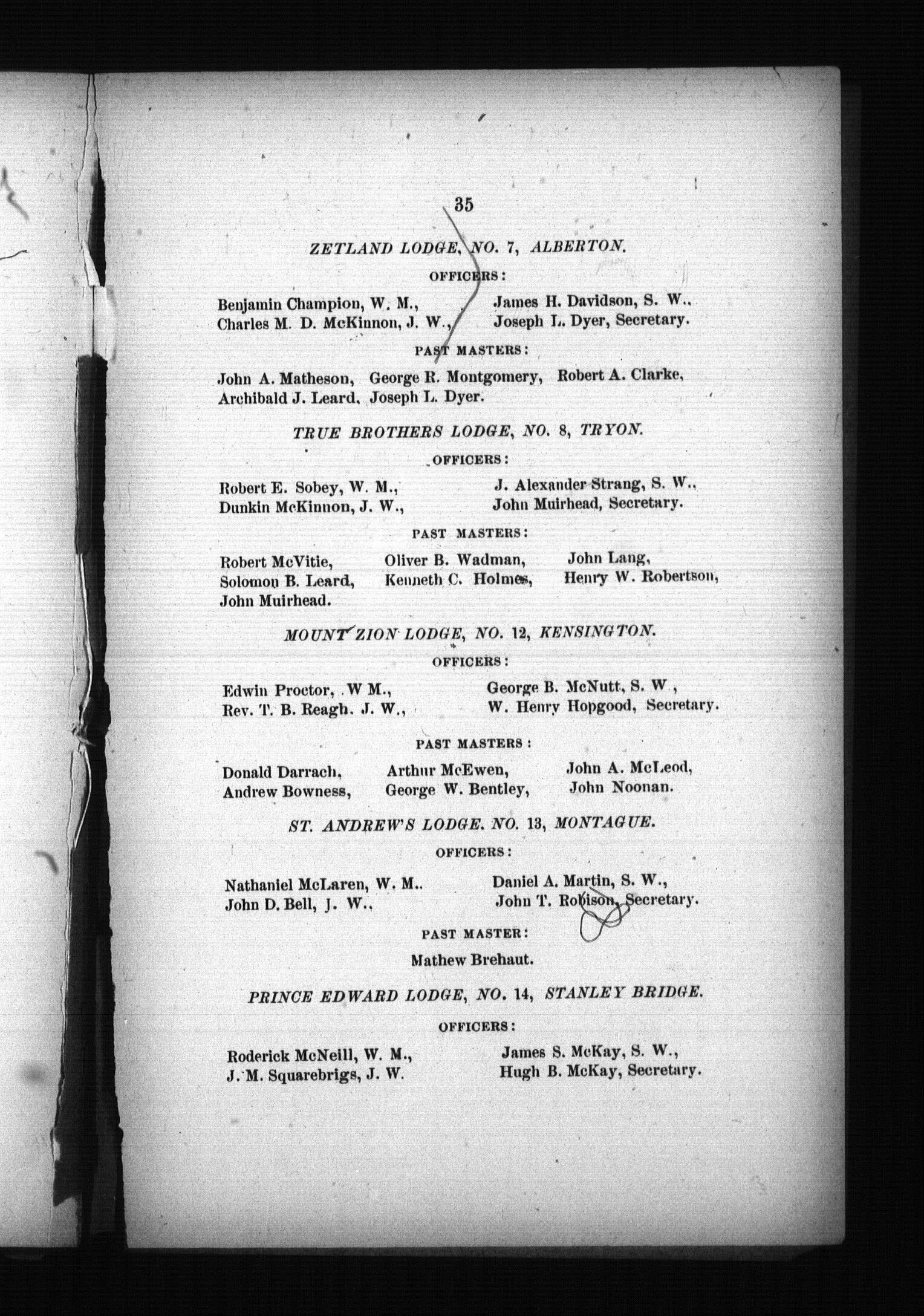 [Charlottetown, P.E.I.] : [M.W. Grand Lodge of the Ancient and Honorable Fraternity of Free and Accepted Masons of Prince Edward Island], 1886; 40 images, 39 avec recherche en texte intégral