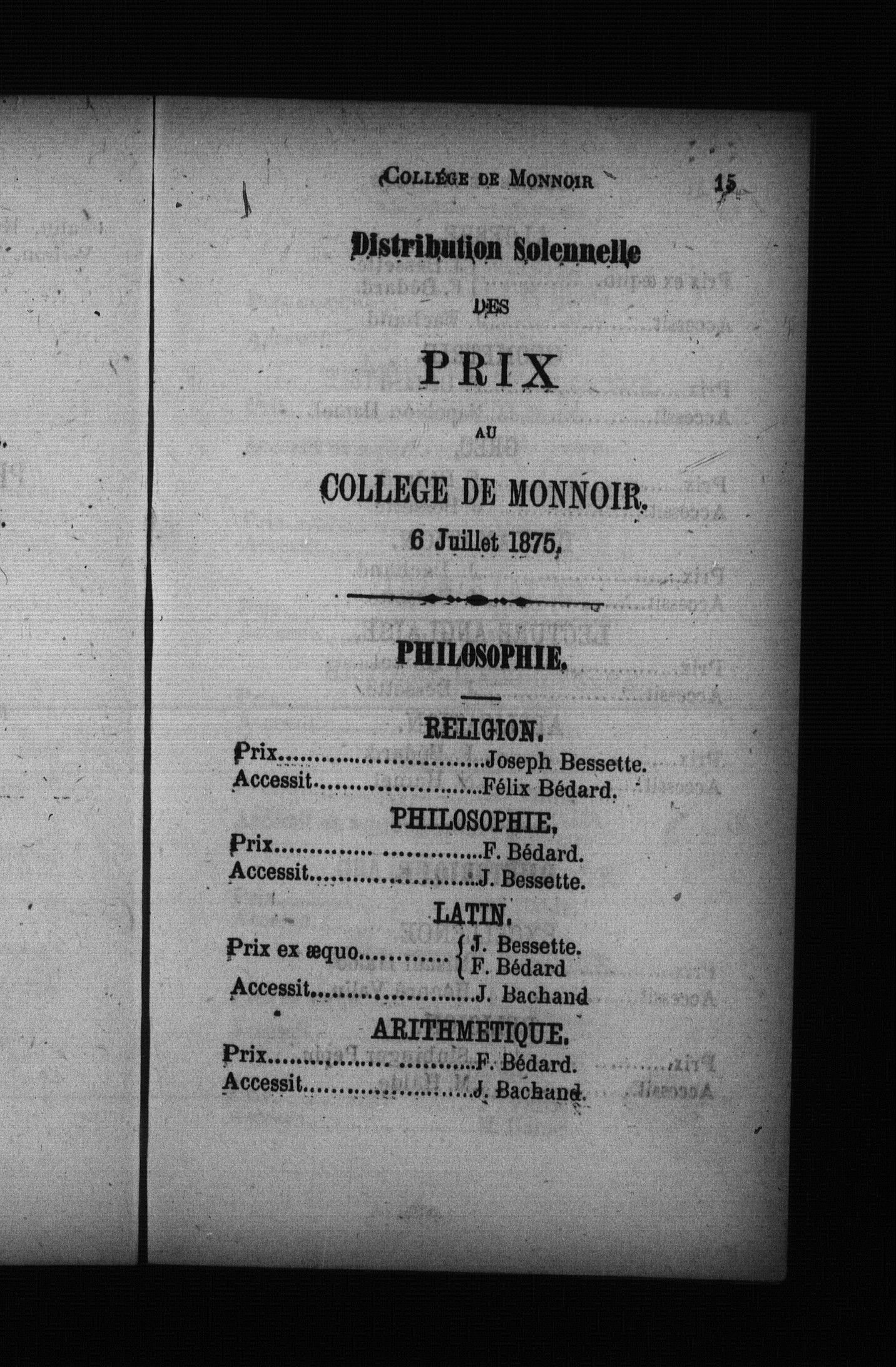 Palmare du Collège Monnoir : Palmare du Collège Monnoir : 1875
