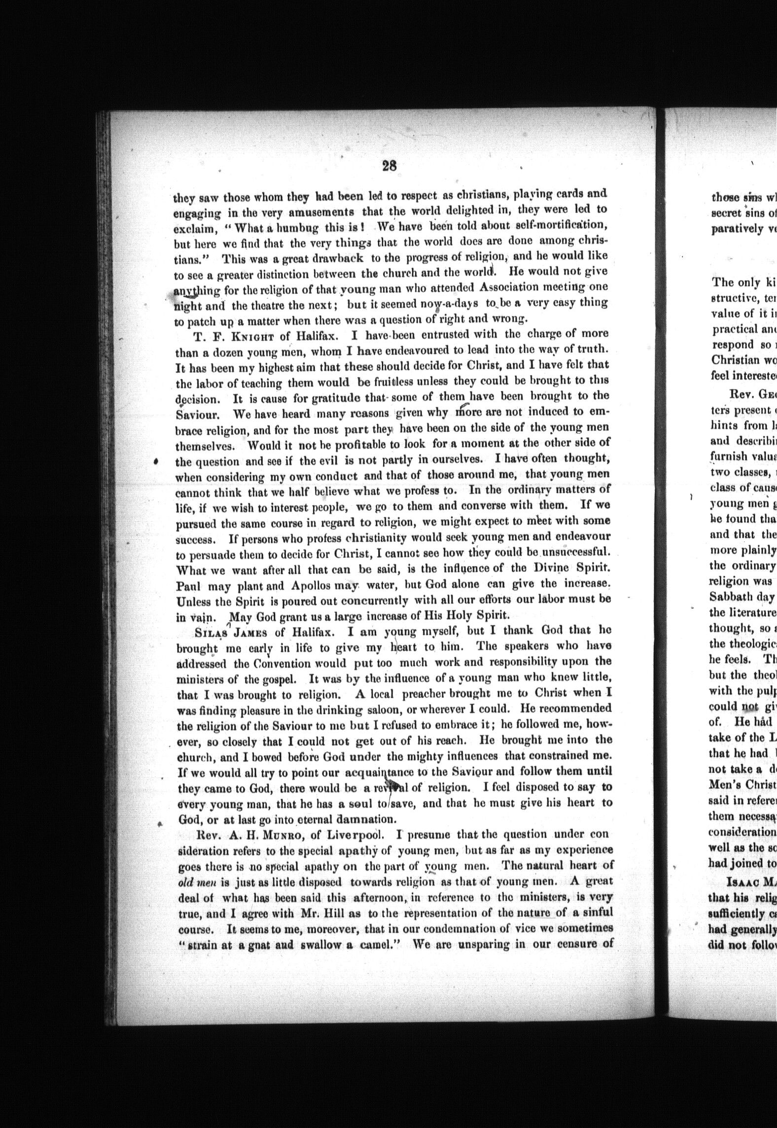 [Halifax, N.S.?] : [Young Men's Christian Associations of the Maritime Provinces of British North America], 1869; 84 images, 0 avec recherche en texte intégral