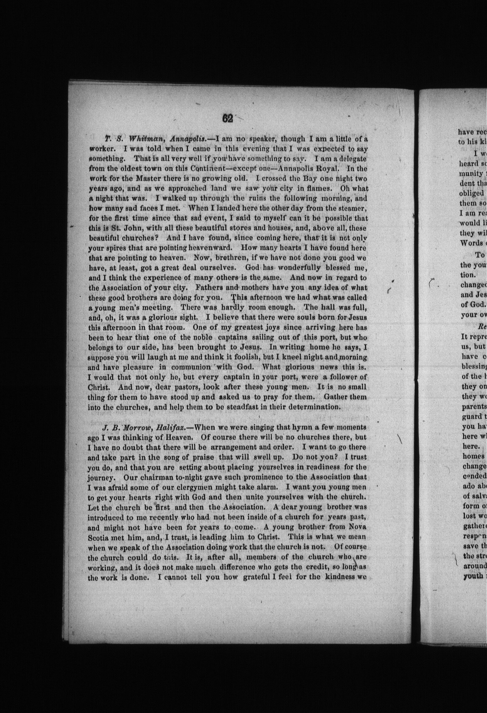 Aide [Halifax, N.S.?] : [Young Men's Christian Associations of the Maritime Provinces of British North America], 1879; 79 images, 0 avec recherche en texte intégral