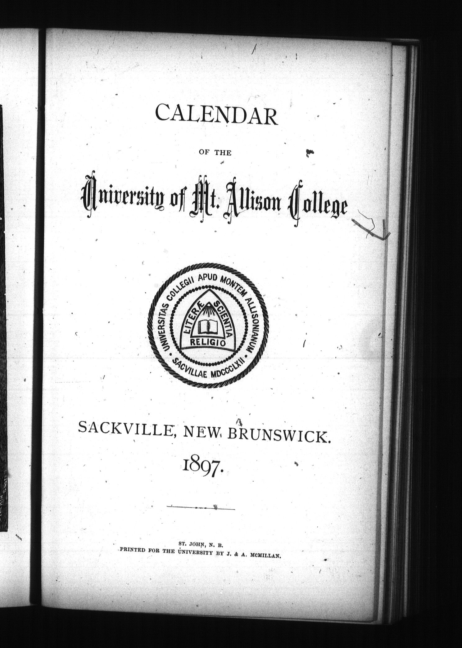 - Calendar of the University of Mt. Allison College, Sackville, New Brunswick : 1897
