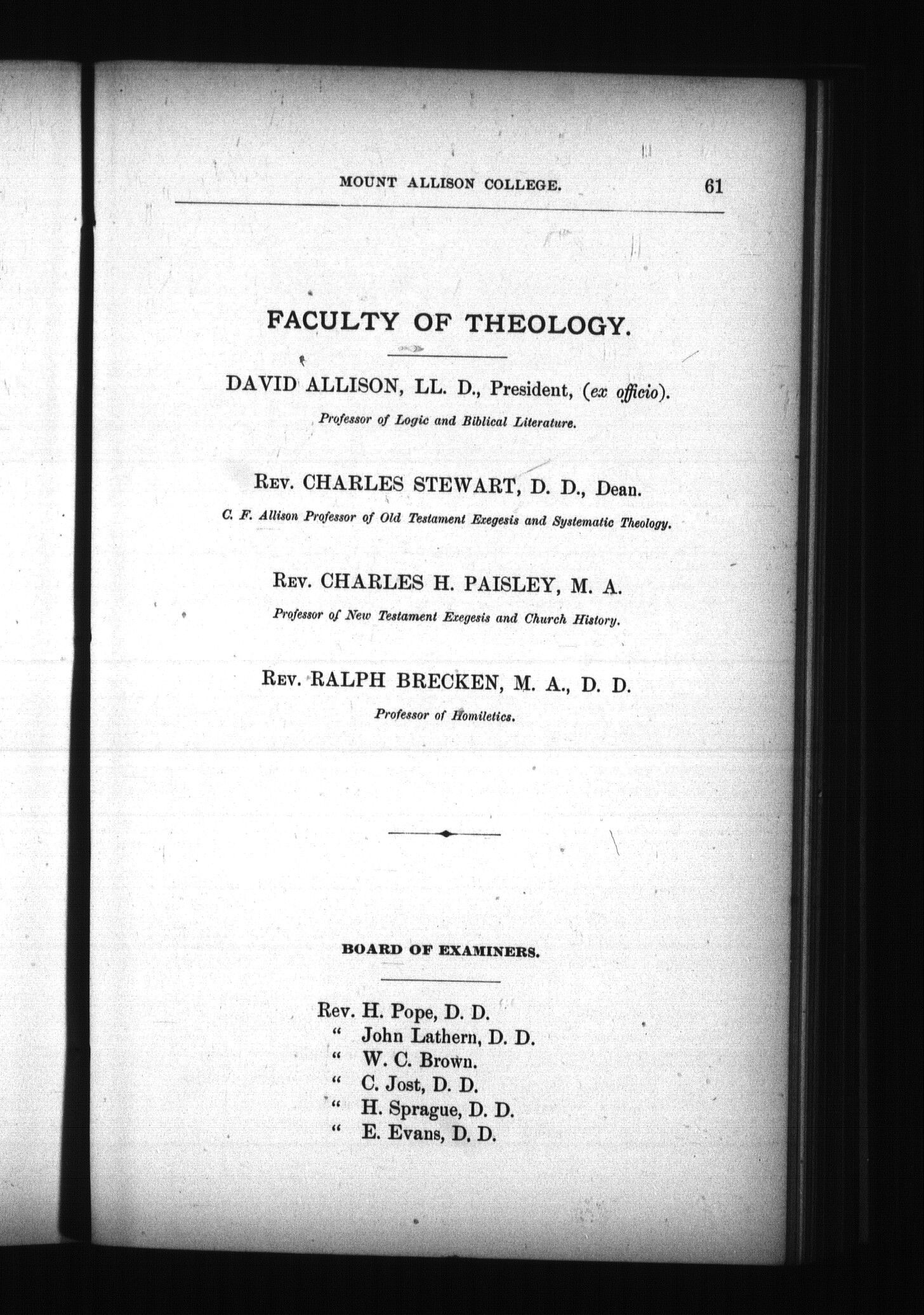 Calendar of the University of Mt. Allison College, Sackville, New Brunswick : 1897