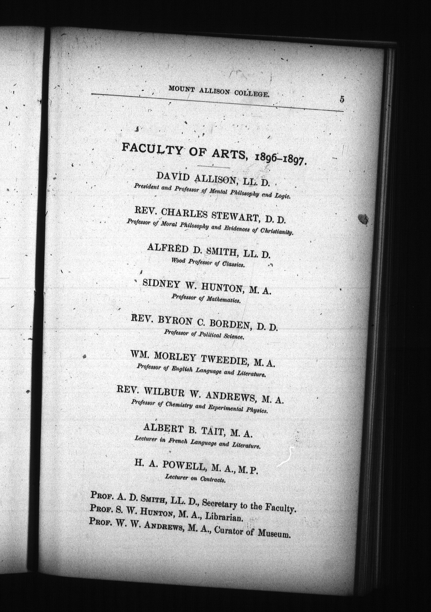 - Calendar of the University of Mt. Allison College, Sackville, New Brunswick : 1897
