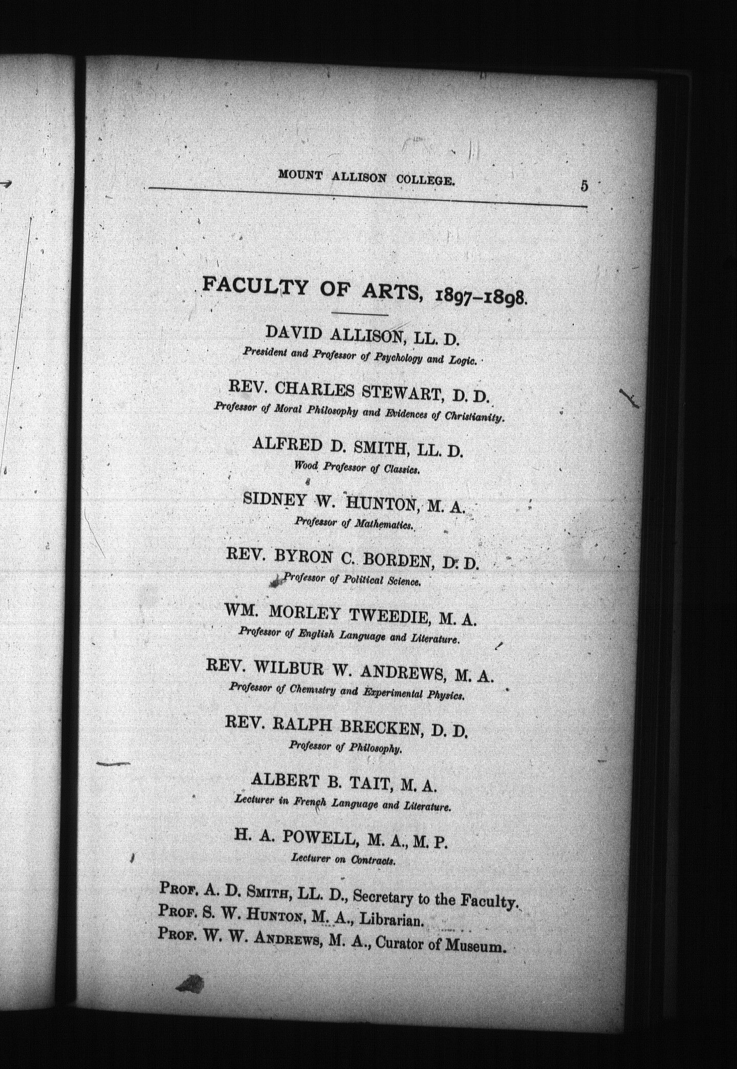 - Calendar of the University of Mt. Allison College, Sackville, New Brunswick : 1898