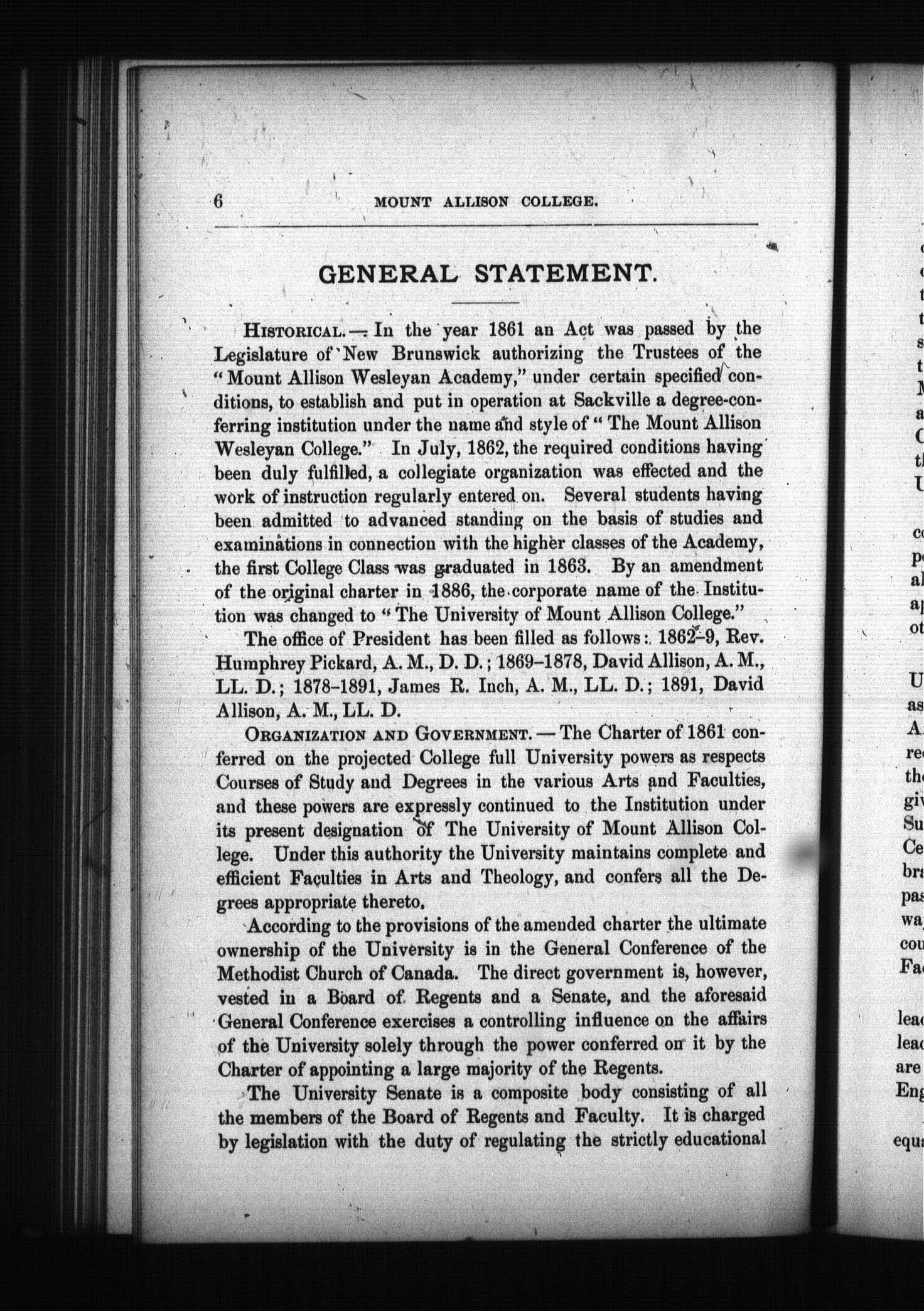 Calendar of the University of Mt. Allison College, Sackville, New Brunswick : Calendar of the University of Mt. Allison College, Sackville, New Brunswick : 1898