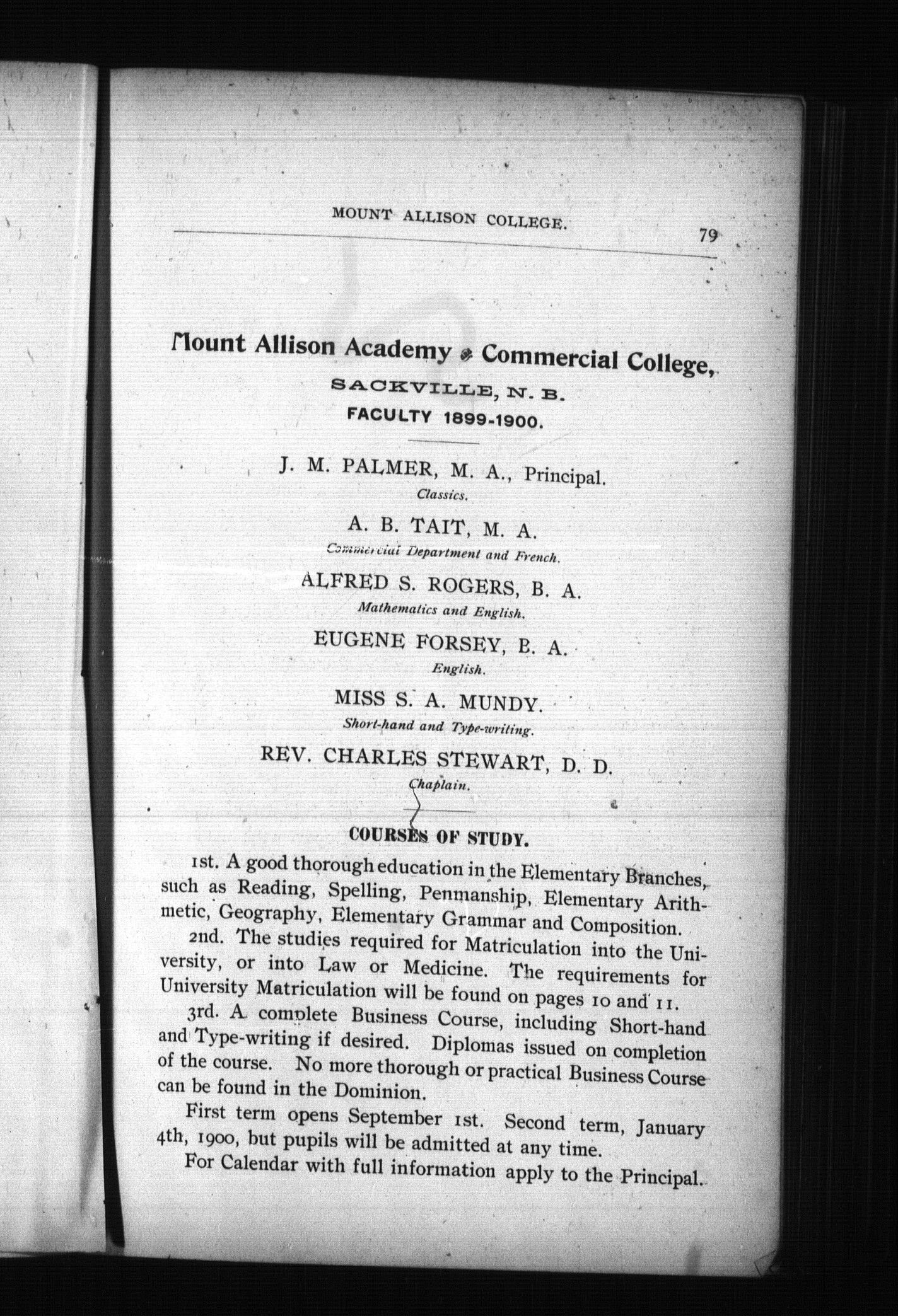 - Calendar of the University of Mt. Allison College, Sackville, New Brunswick : 1900