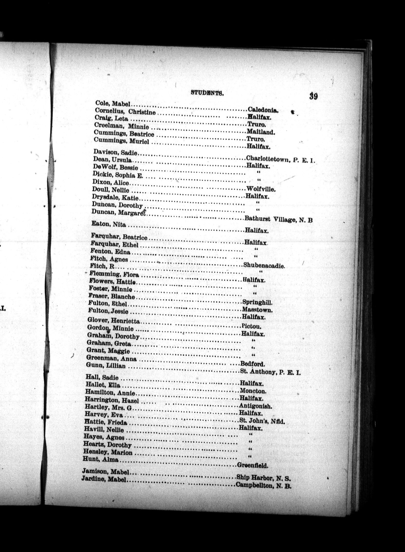 Halifax Ladies' College, Art Studio, and Conservatory of Music (in affiliation with Dalhousie University) : 1900/1901