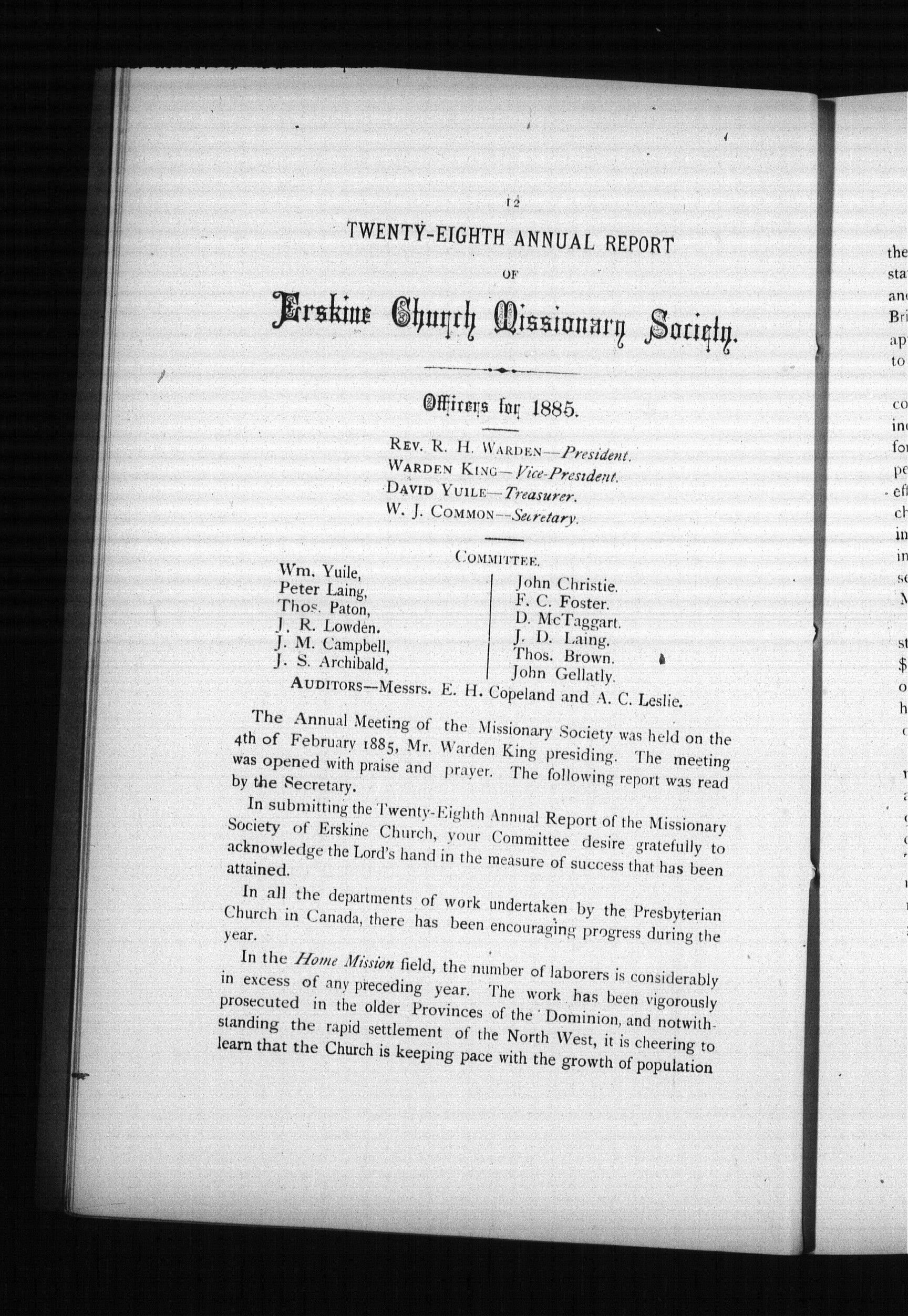 Annual reports of Erskine Church, (Presbyterian Church in Canada) for the year ... : Annual reports for the year ending 31st December, 1884 / Erskine Church, Montreal (Presbyterian Church in Canada) : 1884