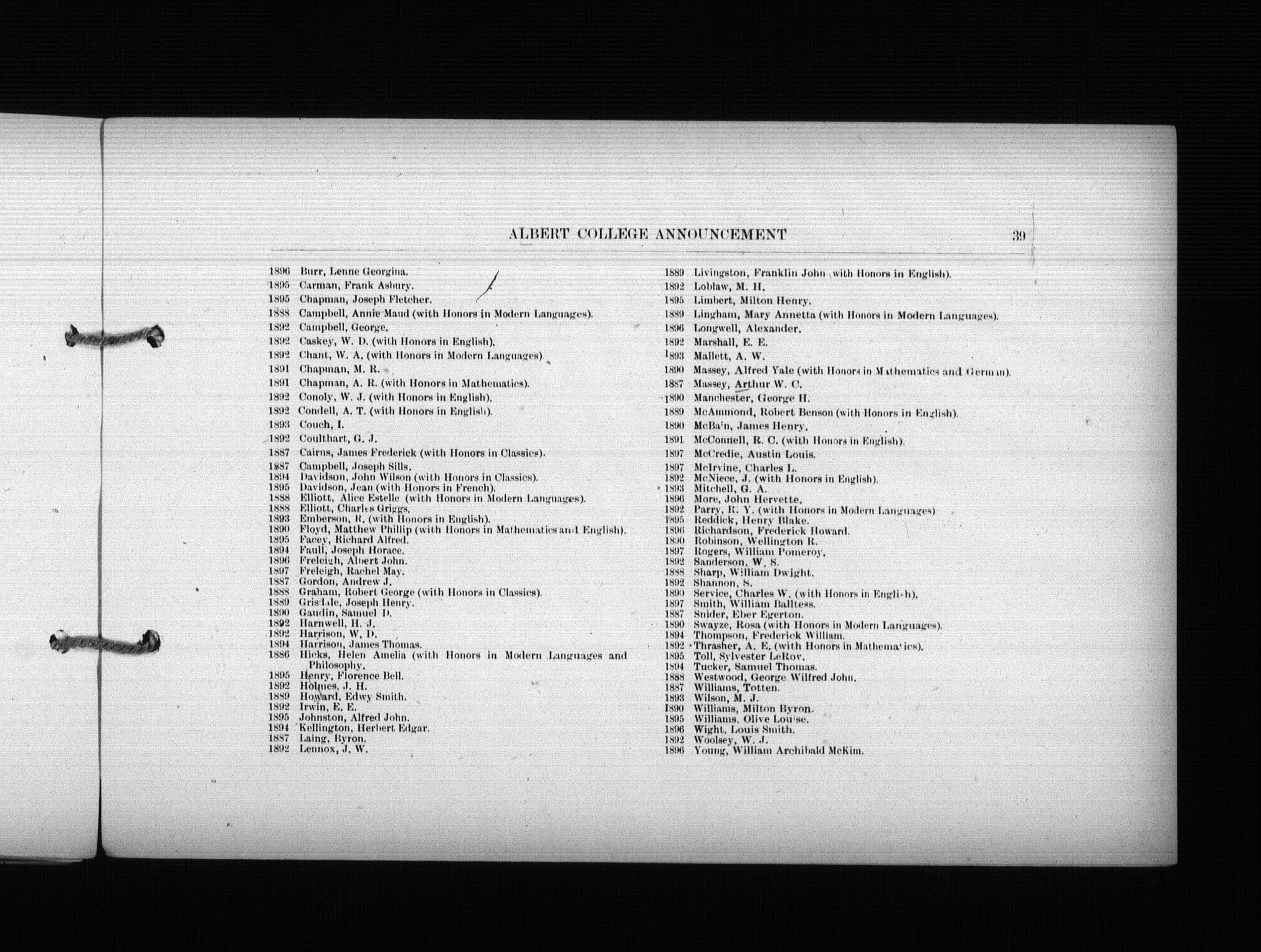 Aide [Belleville, Ont.] : [Albert College], [1897]; 48 images, 47 avec recherche en texte intégral