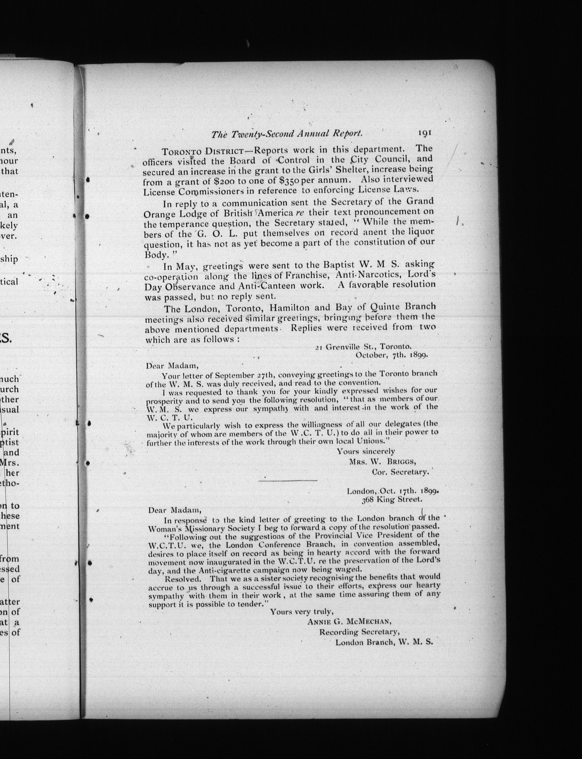 Report of the ... annual meeting of the Ontario Woman's Christian Temperance Union : Report of the twenty-second annual meeting of the Ontario Woman's Christian Temperance Union : held in Guelph, Oct. 31st to Nov. 3rd, 1899 : Twenty-Second (1899)