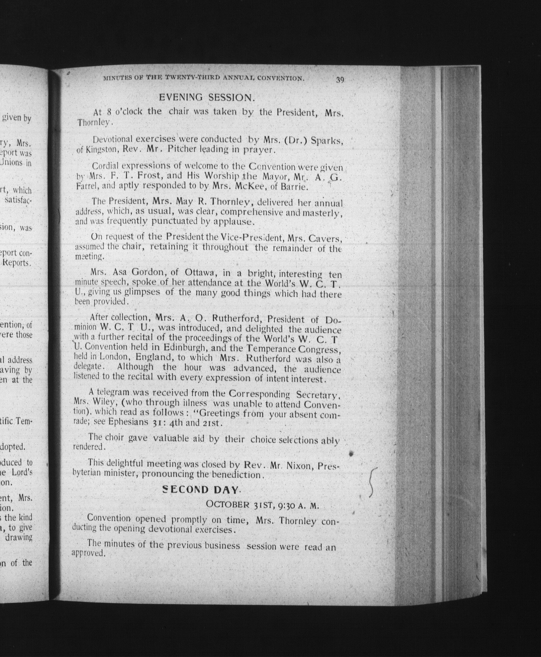 Report of the ... annual meeting of the Ontario Woman's Christian Temperance Union : Report of the twenty-third annual meeting of the Ontario Woman's Christian Temperance Union : held in Smith's Falls Oct. 29 to Nov. 2, 1900 : Twenty-Third (1900)