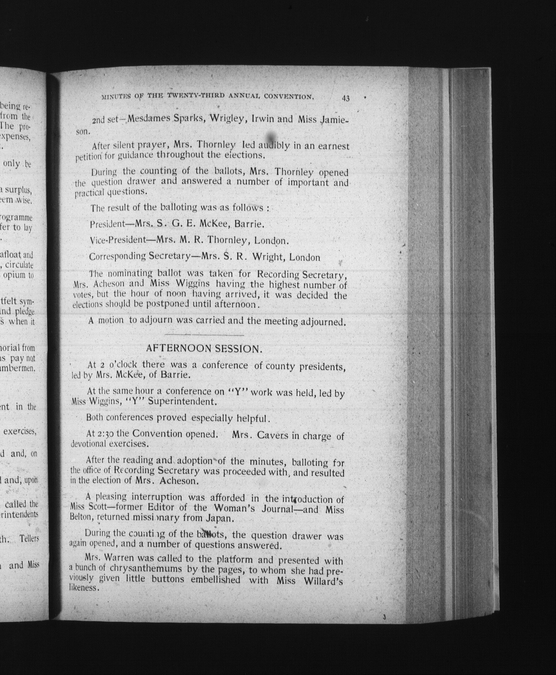 Report of the ... annual meeting of the Ontario Woman's Christian Temperance Union : Report of the twenty-third annual meeting of the Ontario Woman's Christian Temperance Union : held in Smith's Falls Oct. 29 to Nov. 2, 1900 : Twenty-Third (1900)