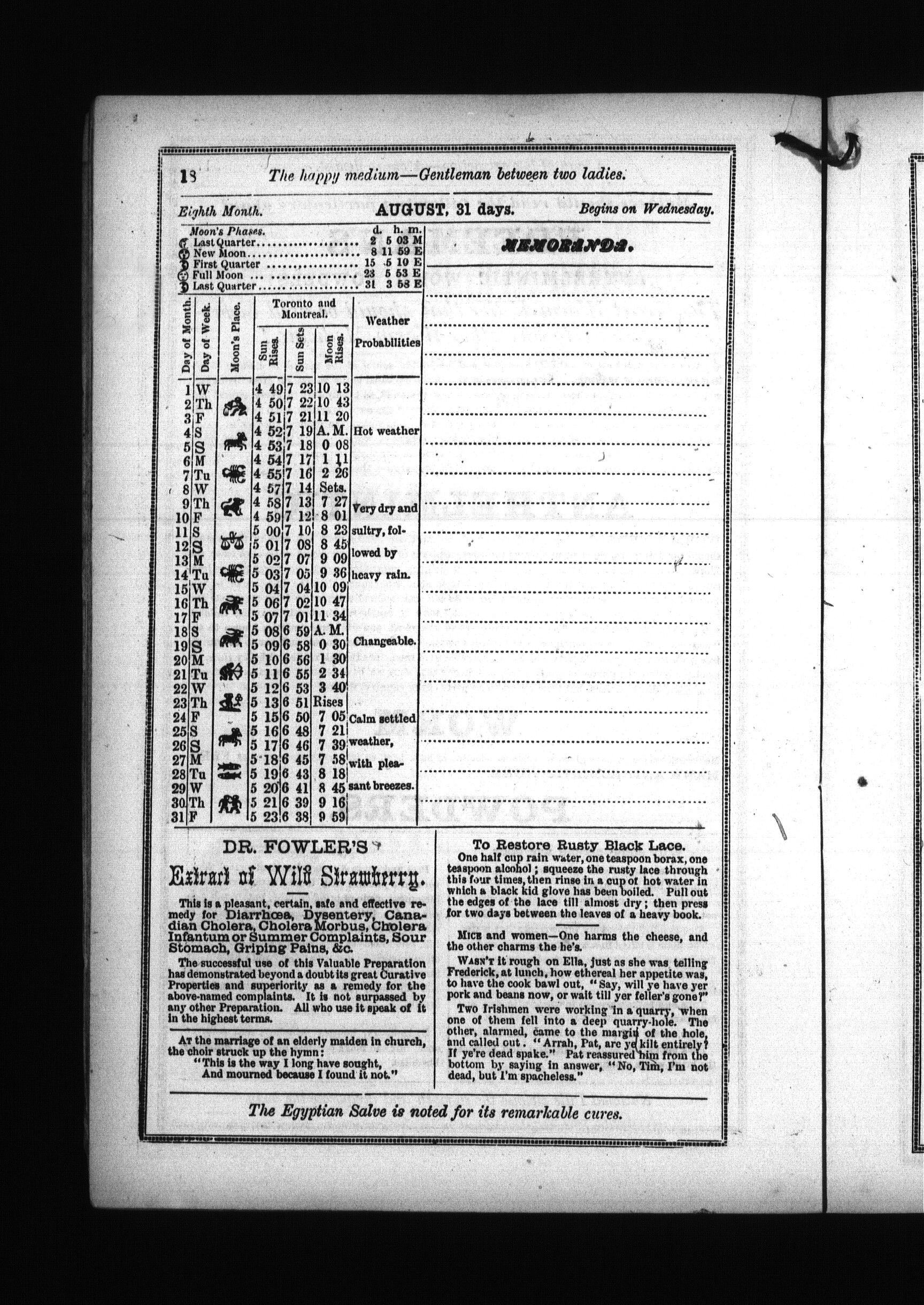 Roberts' royal Canadian almanac and family recipe book : Robert's royal Canadian almanac and family recipe book : 1877