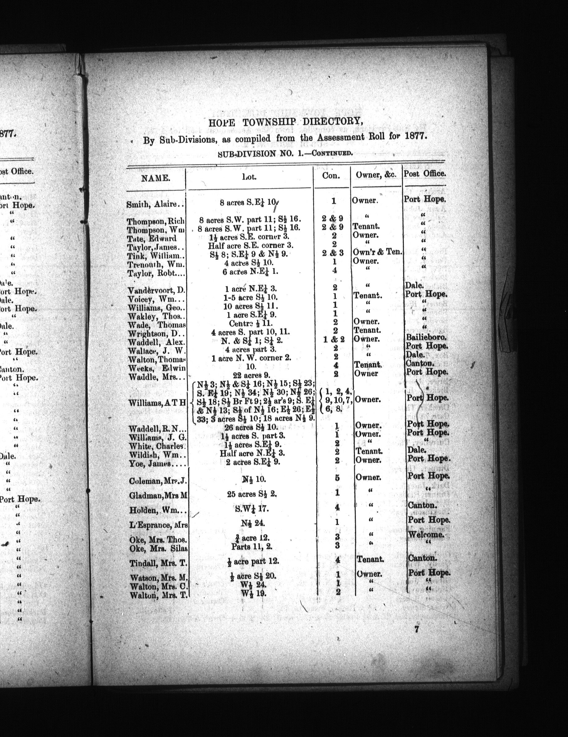 Directory of the township of Hope by sub-divisions, as compiled from the Assessment Roll for year ... : Directory of the township of Hope by sub-divisions, as compiled from the Assessment Roll for year 1877 : 1877